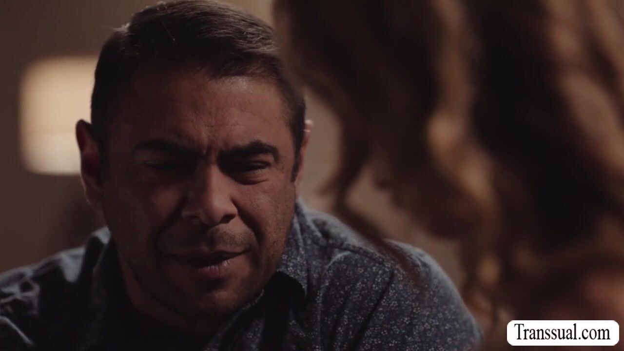Skinny TS stepdaughter comforts her sad stepdad by letting him throat her hard shecock passionately.After that,she gets naked and then she lets her crying stepdad bareback fuck her tight wet ass so deep and hard.