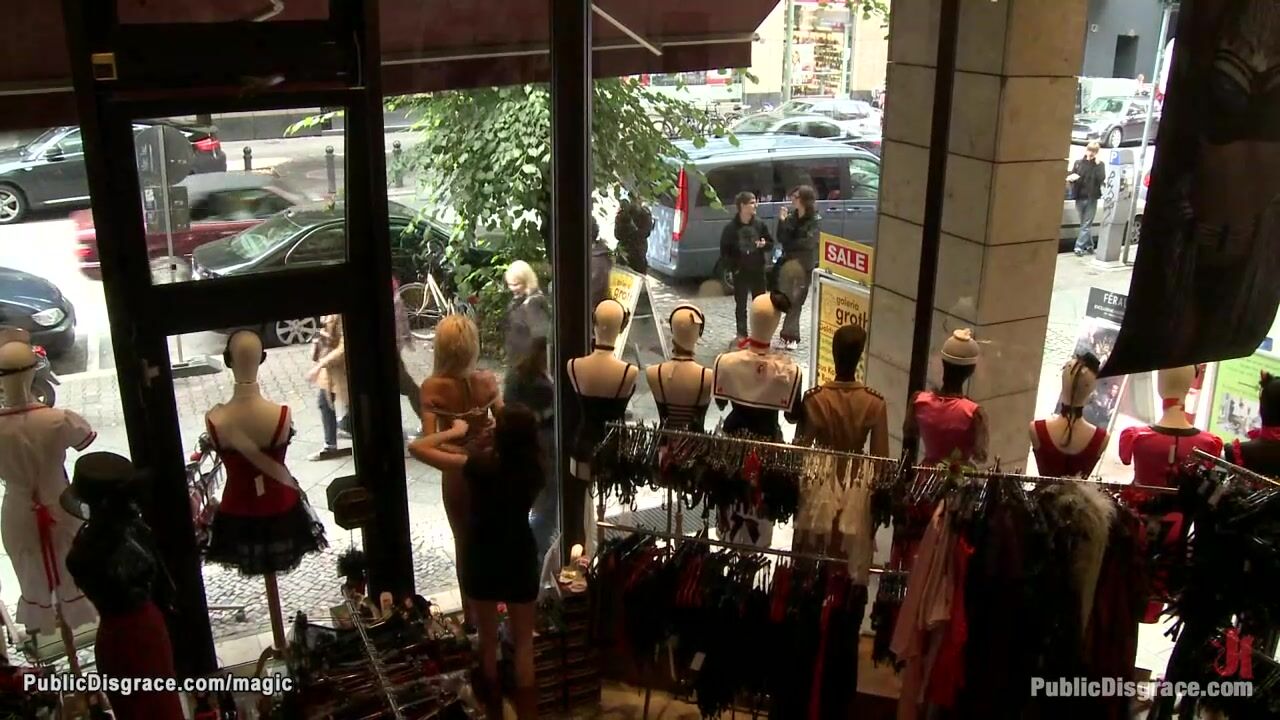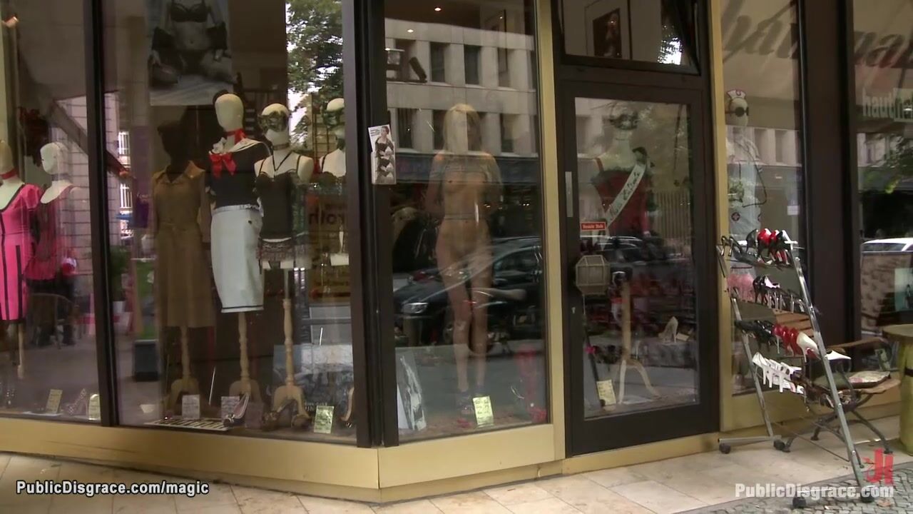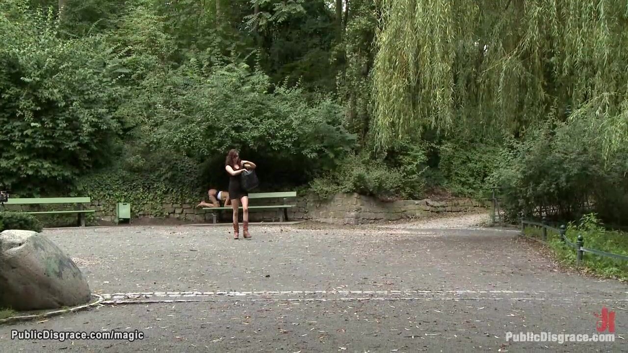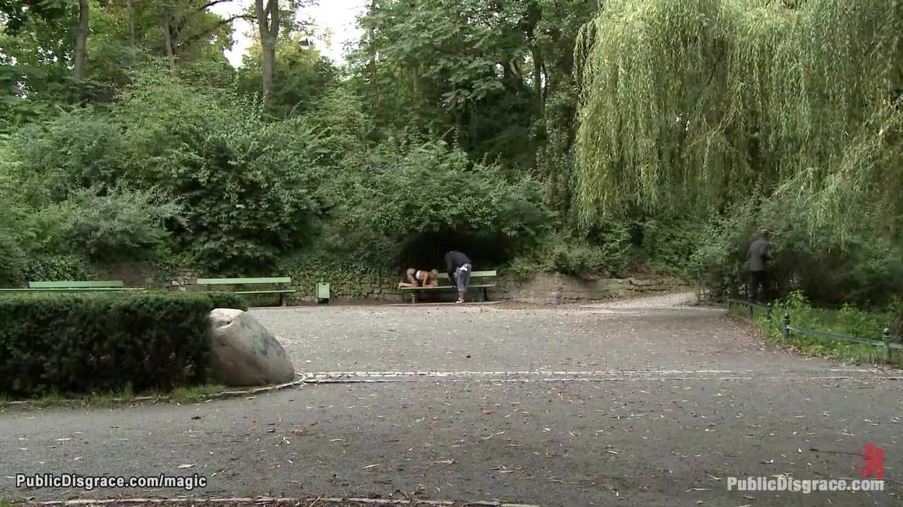 Small tits Euro blonde Blanche Summer is bound and exposed naked in public widow then in the park ass and feet whipped by dom Princess Donna Dolore