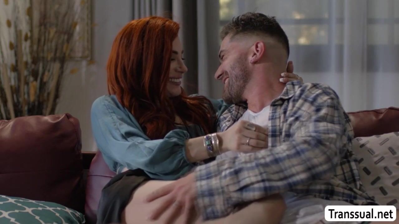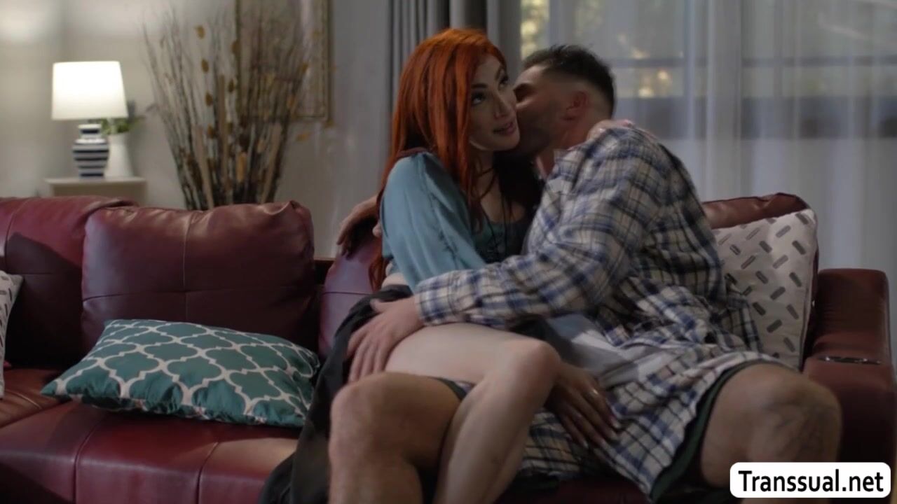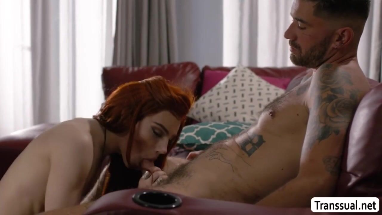 Slut TS brings her boyfriend into her place while her husband is out for good.They start kissing each other on the couch and she then throats the hard big cock of her boyfriend.In return,the guy bareback fucks her tight wet ass so deep and hard.