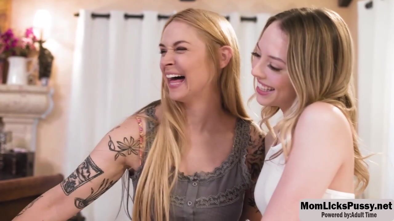 MILF blonde wants to join her stepdaughter and her two friend in their slumber party.After that,they get horny and start kissing each other in foursome way.Next is,they all get naked and then they start kissing each other wet pussy so hard.