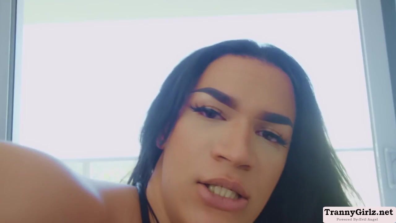 Handsome straight guy Ramon Nomar dates busty latina transexual Candice Kane doing sexy striptease slowly going near for kissing. The big tits shemale mounts his big cock up her mouth to deepthroat blowjob before banging her asshole bareback hardcore doggystyle.
