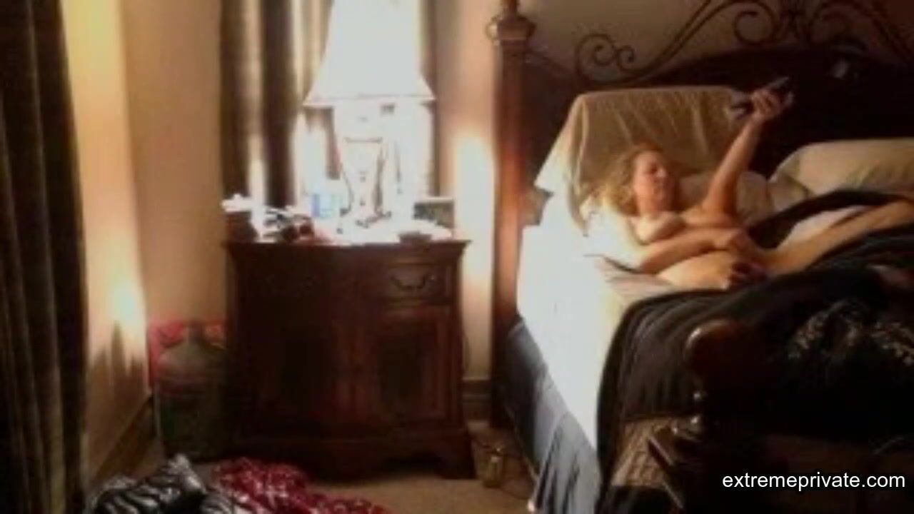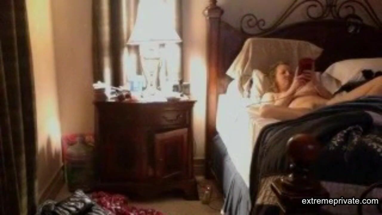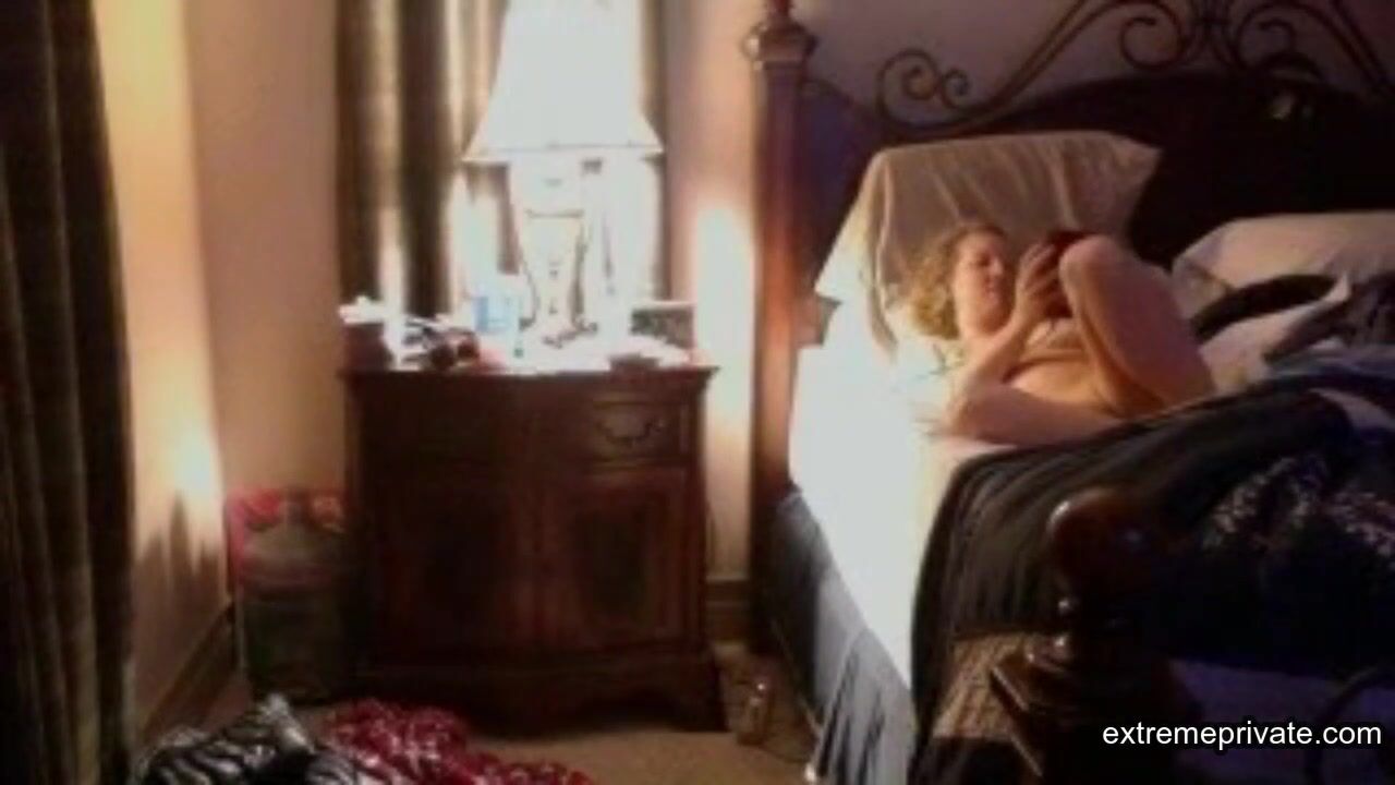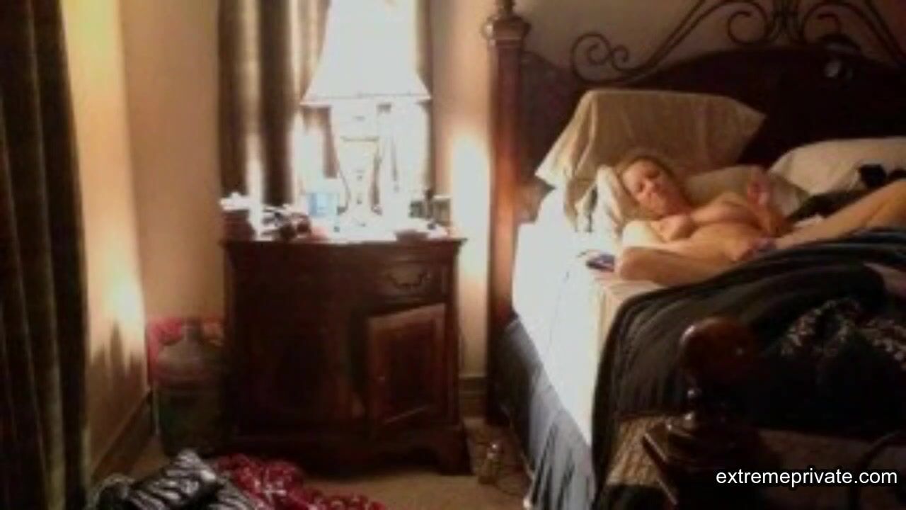 I'm quite horny for my stepmom of 45. She likes to watch porn in bed and then she grabs her dildo while I secretly watch through a camera.