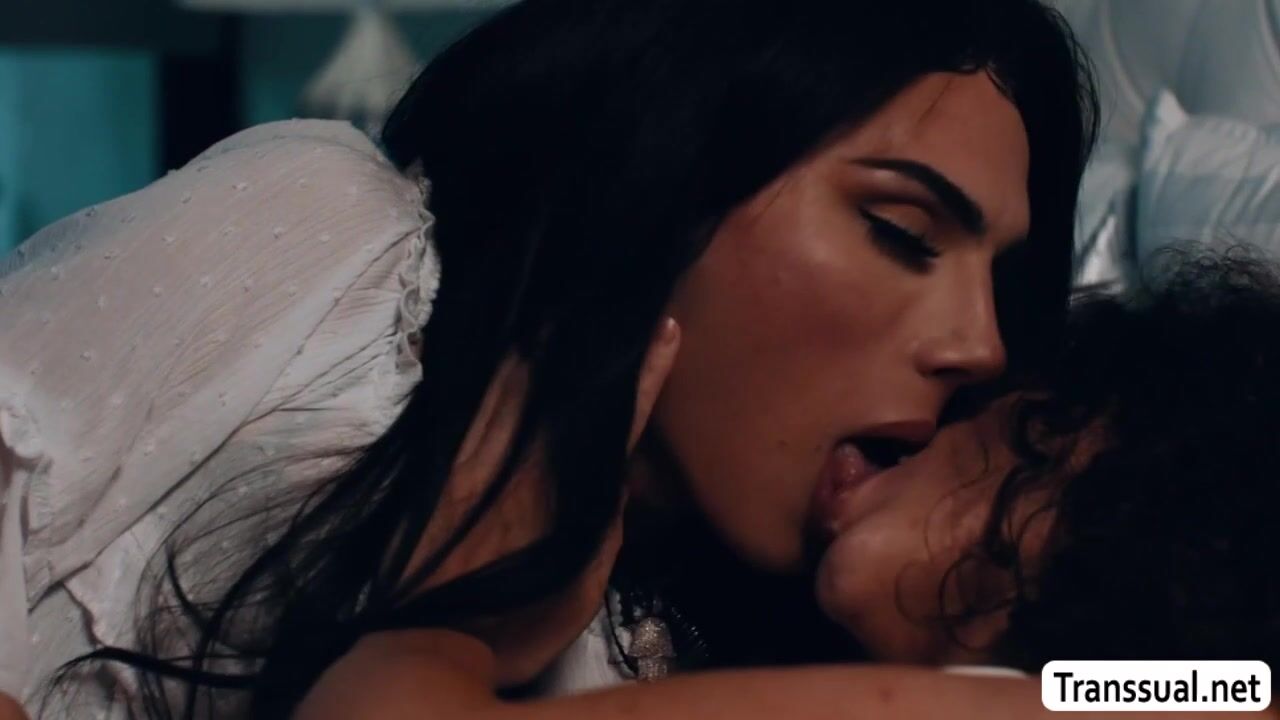 Curly teen and her TS stepmommy are on the bed kissing each other while cuddling.After that,she lets her TS stepmom lick her pussy first to makes it wet.In return,she throats her tranny cock and she then rides it passionately.