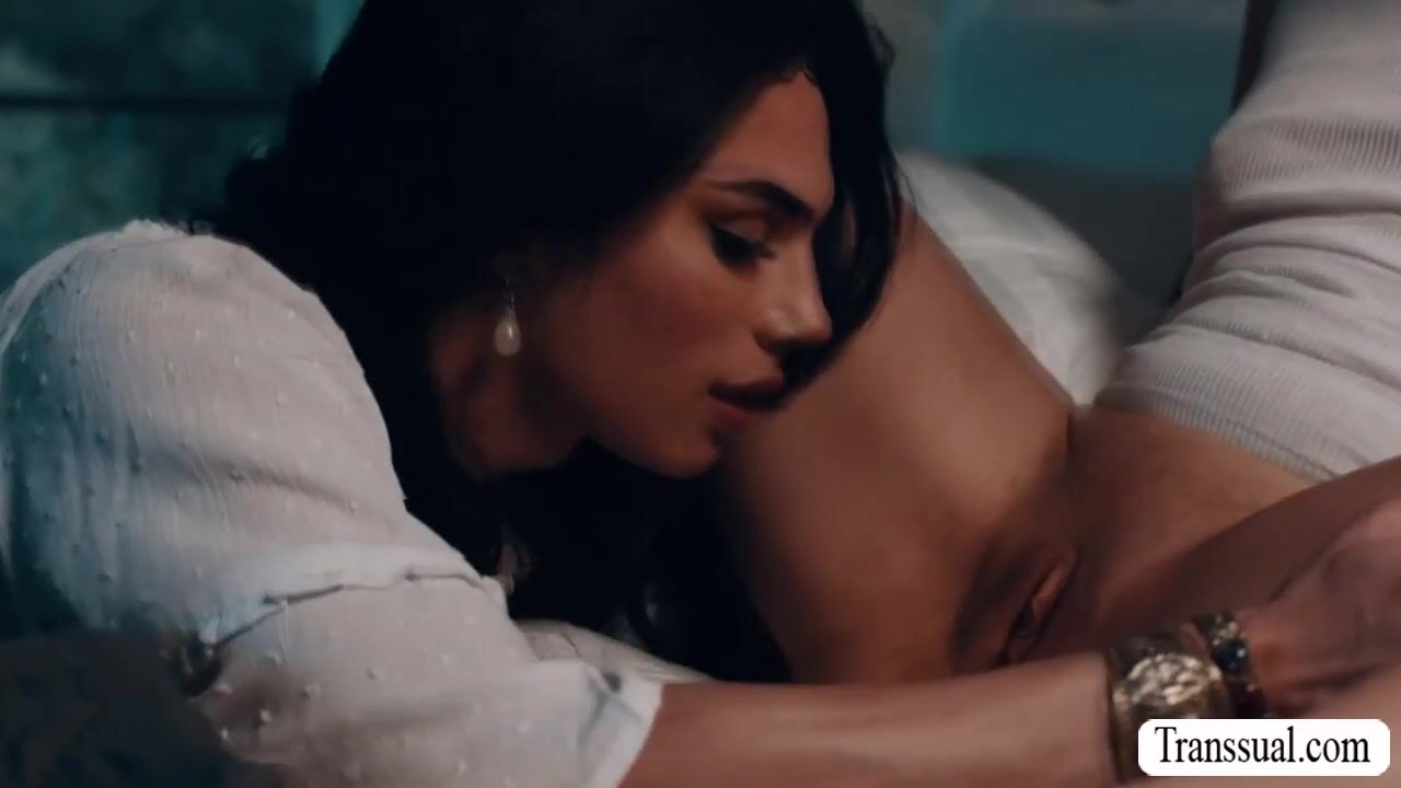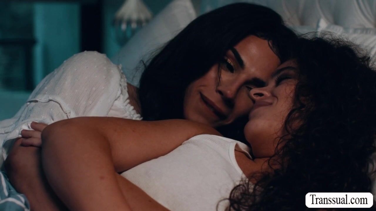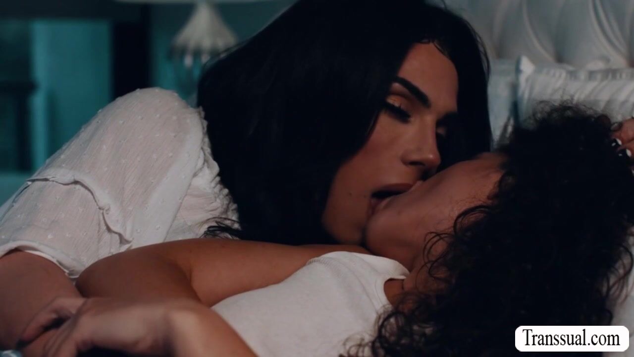 Teen babe and her TS stepmommy are on the bed kissing each other while cuddling.After that,she lets her TS stepmom lick her pussy first to makes it wet.In return,she throats her tranny cock and she then rides it passionately.