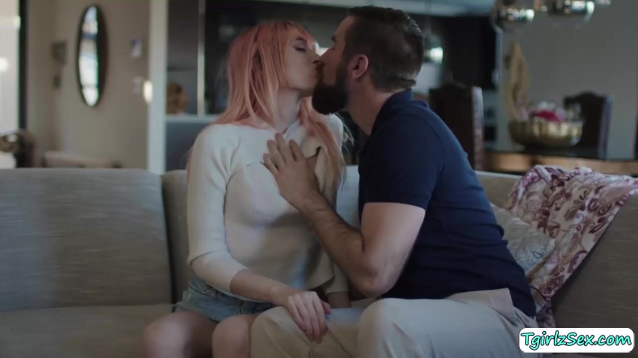 Big tits transexual stepdaughter Mimi Oh makes out with her horny straight stepdad Chris Epic givng his big cock a nasty deepthroat blowjob after kissing him. In return, he bennds her over to rimjob her big ass then anal bareback hardcore doggystyle.
