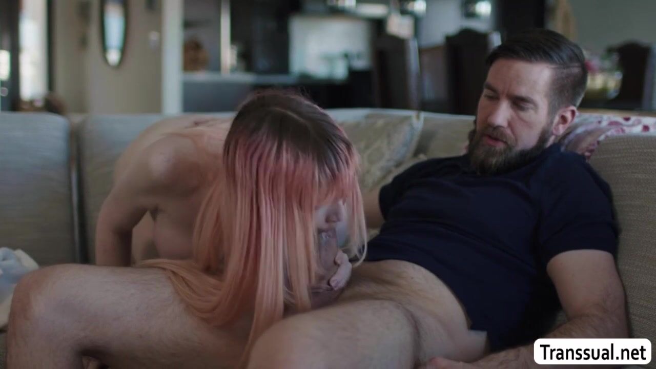 Bearded dude helps his TS stepdaughter to feel fresh from her work.They start kissing each other and he then licks her ass to makes it wet.In return,his TS stepdaughter suck his hard dick and she lets him bareback fuck her ass.