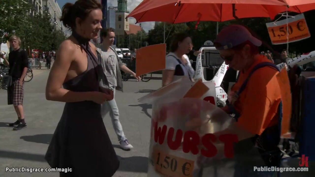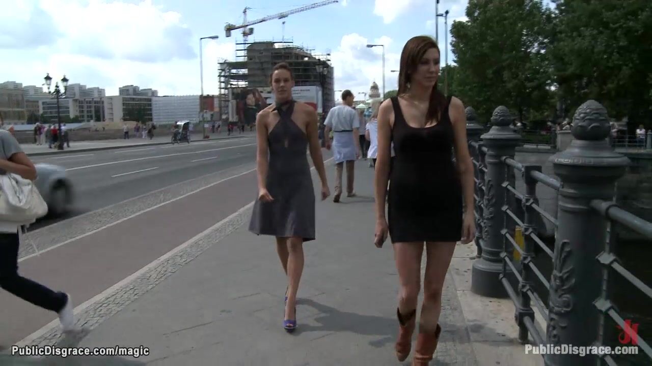 Hot MILF lezdom Princess Donna Dolore exposes German babe Black Lady in public streets then big cock Tommy Pistol fucks her in various places all over the European city