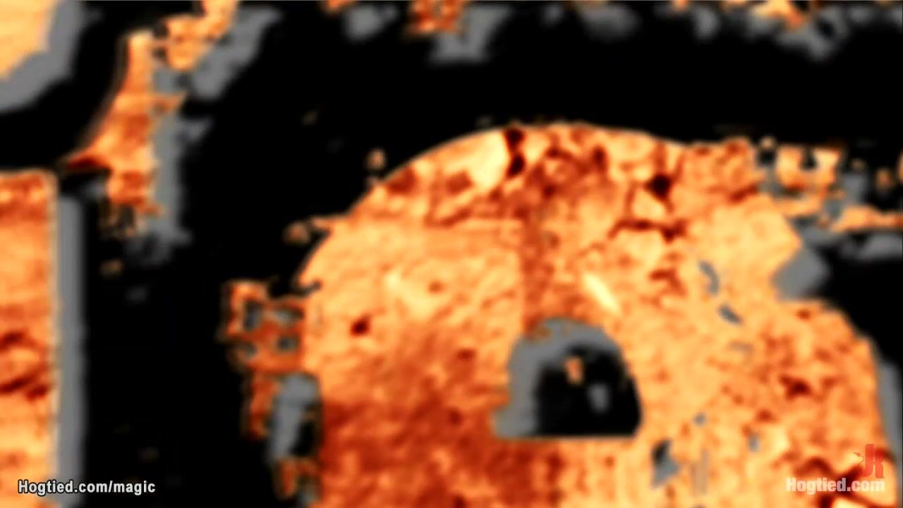 Red head slave hottie Hope Howell is bound down on her knees with legs spreaded and gets pussy vibrated by master Matt Williams on hogtied in dark dungeon