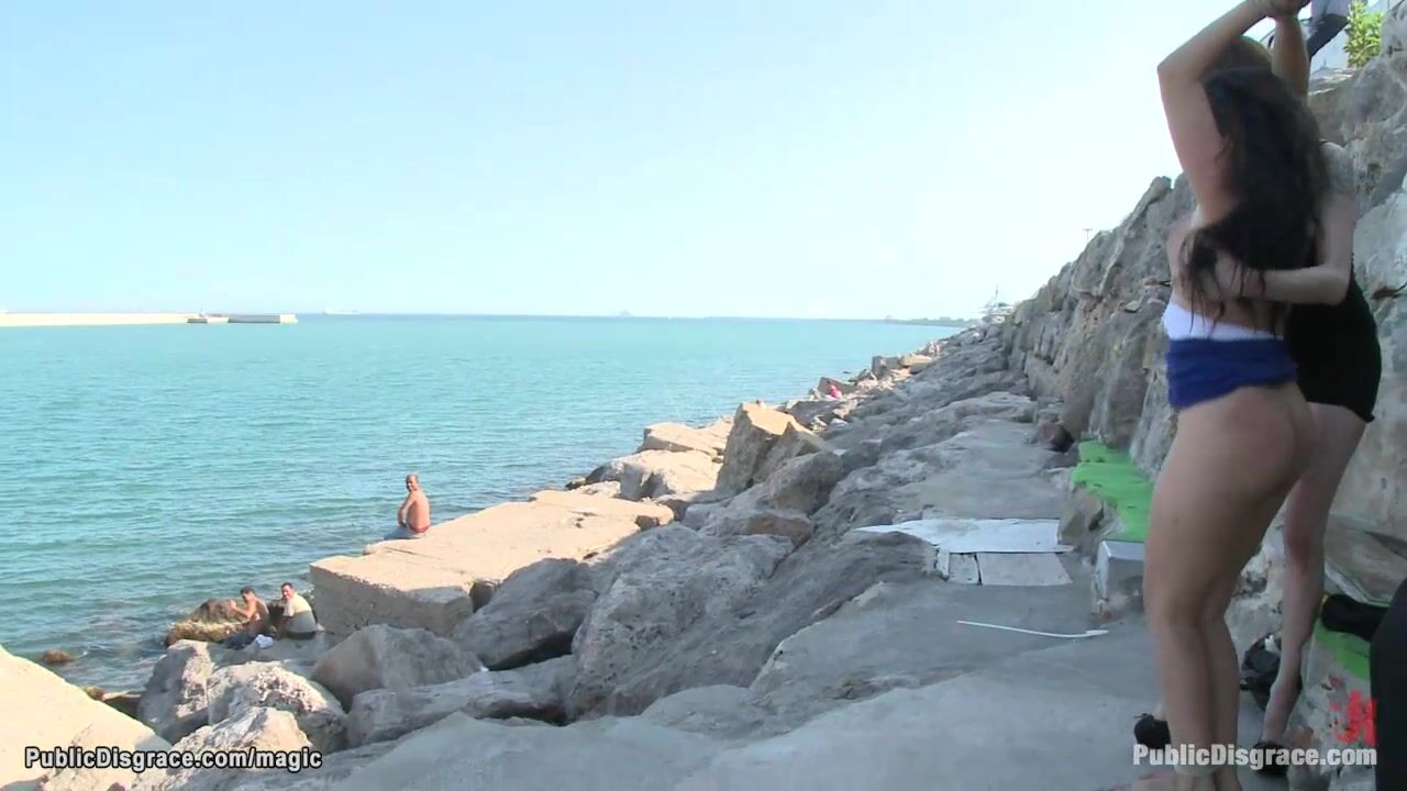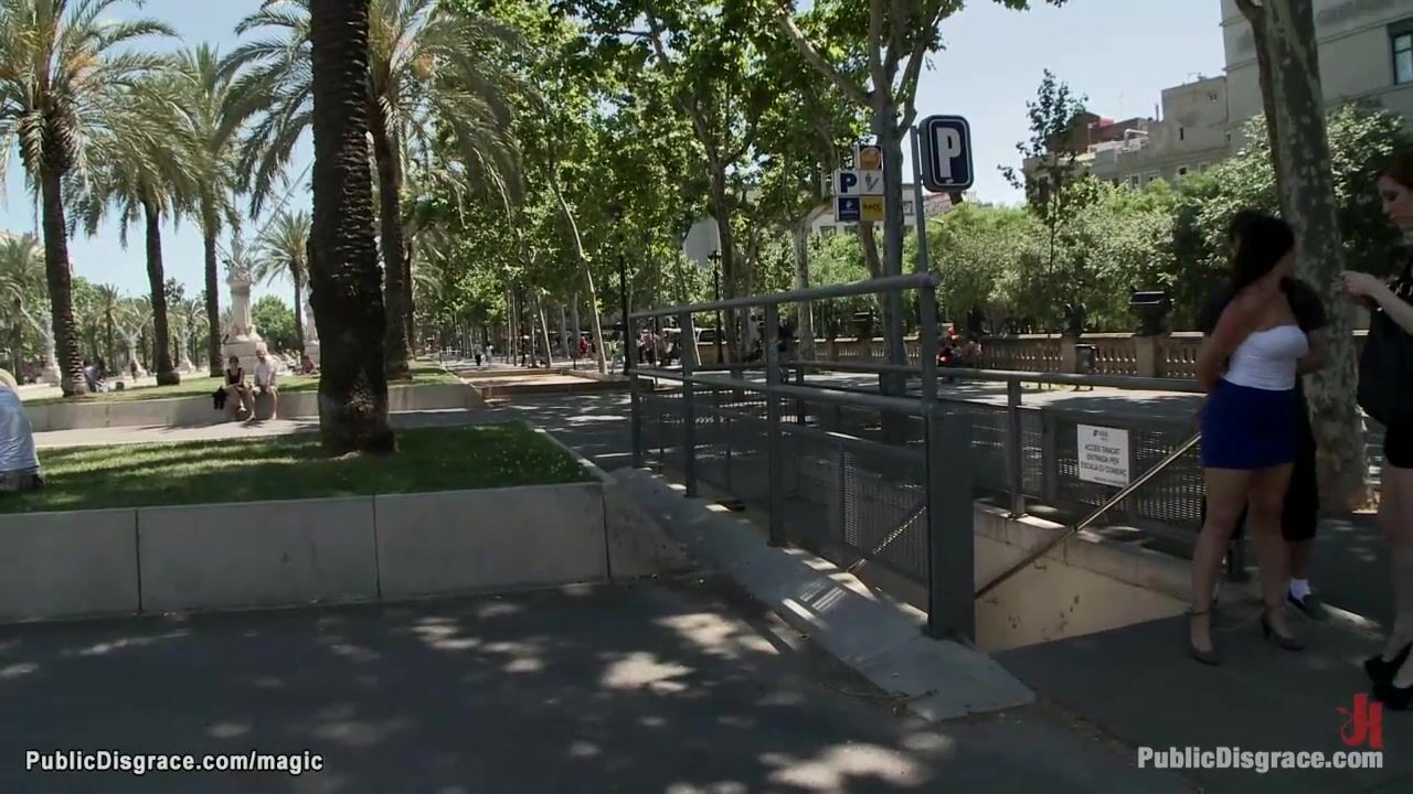 Spanish hottie Salma de Nora walked bound through public streets by James Deen and mistress Princess Donna Dolore then fucked by big cock by the sea till brough and banged in local restaurant