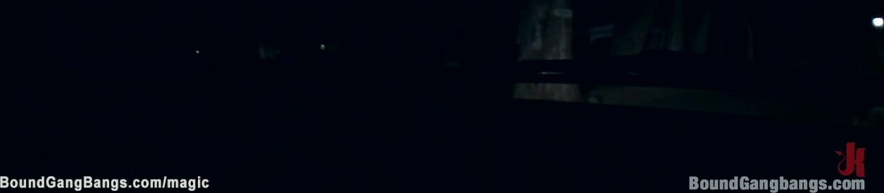 Boyfriend James Deen drove sexy girlfriend Kenzie Vaughn in woods in the middle of the night and with his pals bound and double penetration fucked on mattress