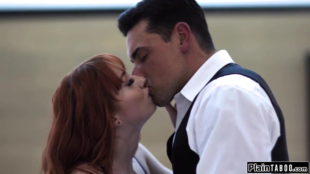 Small tits teen stepdaughter puts her hand between stepdads legs.The old and young couple kiss and the redhead takes out his big dick to deepthroat it.Her mum walks in when she rides on daddys cock.The ginger gives another blowjob and fucks on top