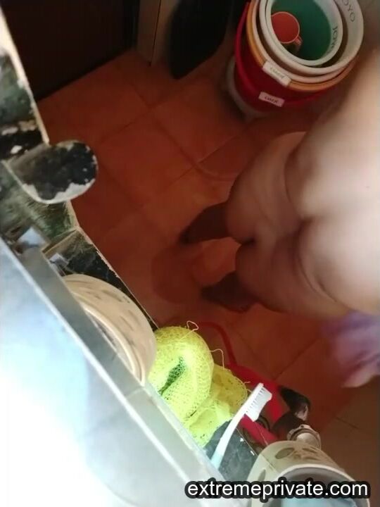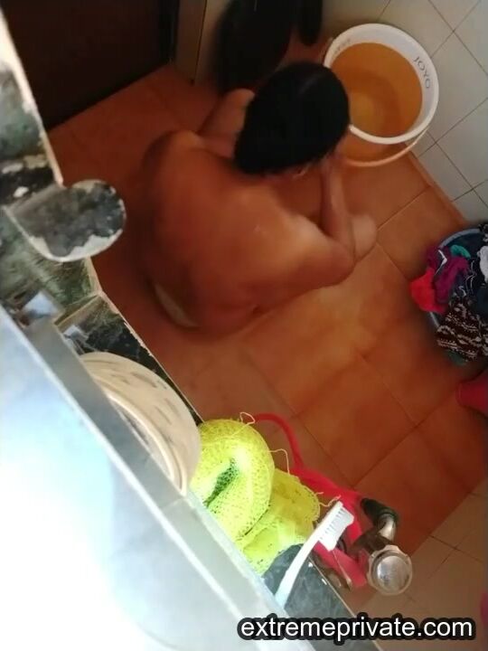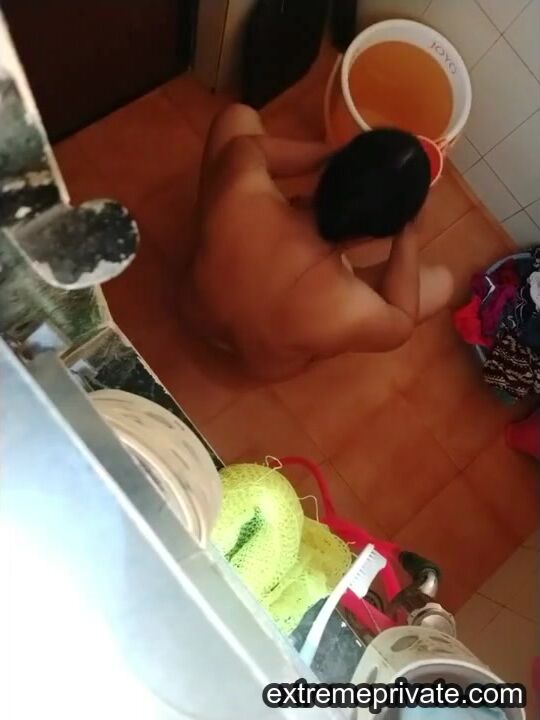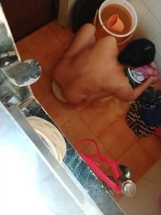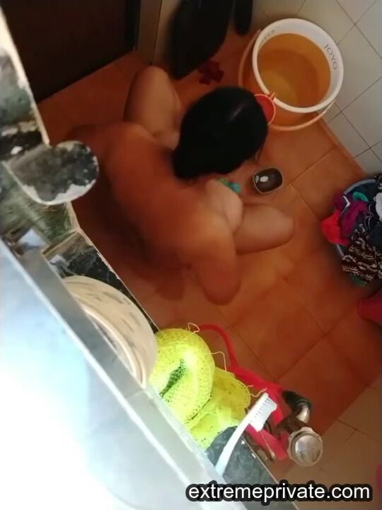 My gorgeous aunt bathing in our bathroom while filmed with the hidden camera. I watch her live in the adjacent room while jerking my cock.