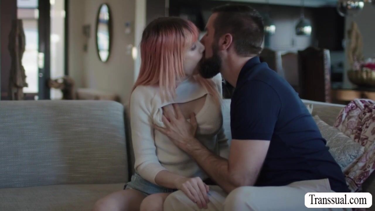 Pink haired TS comforted by her new stepfather by kissing her passionately.After that,he licks her ass first to makes it wet.Next is,she throats her stepdads big cock in return and lets him bareback fuck her tight wet ass so deep and hard.