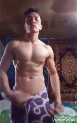 very cute asian stud shows off & JO & wanks his thick cut dick on cam