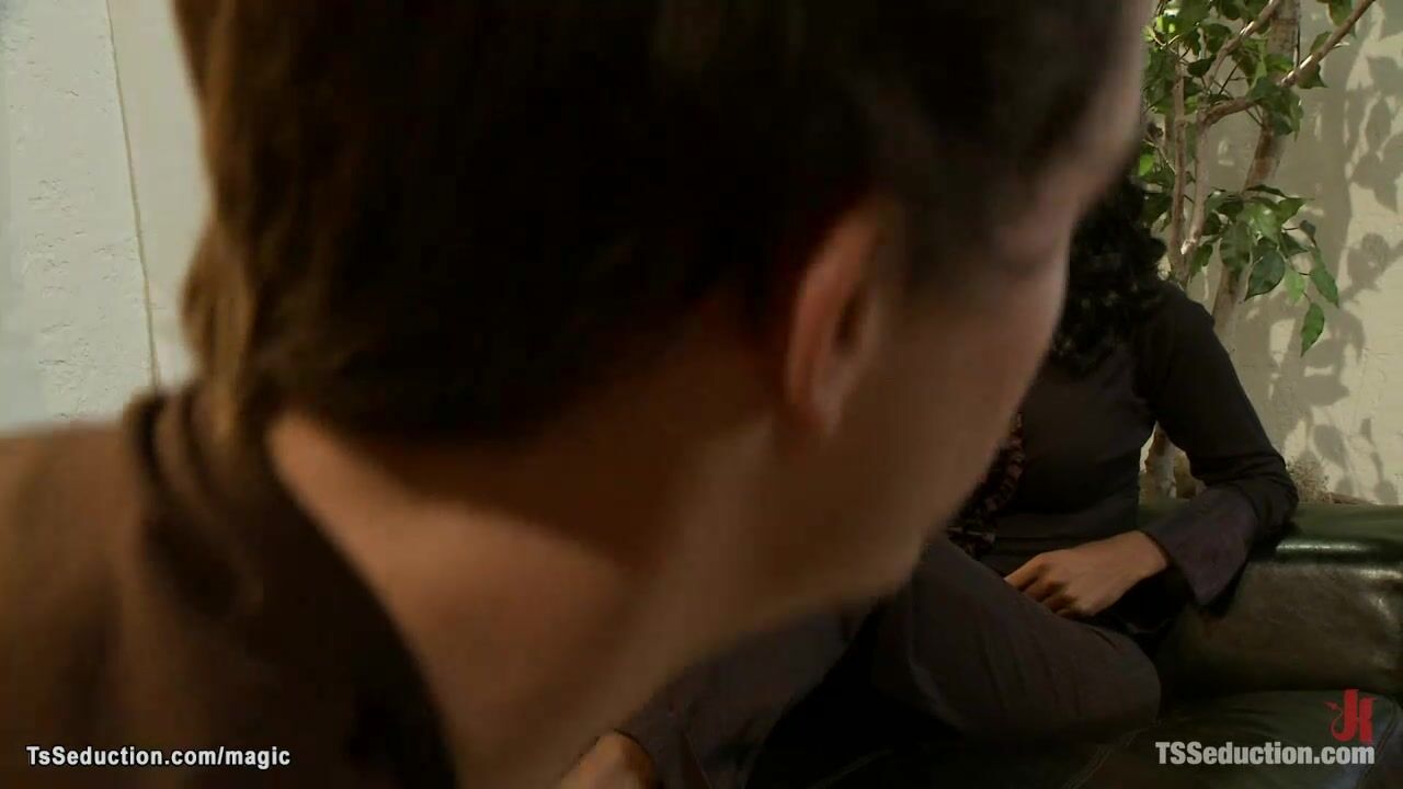 College guy CJ decides to skip class and ebony shemale Dean Natassia Dreams requests a meeting with him after hours in her private home and binds and fucks him with bbc