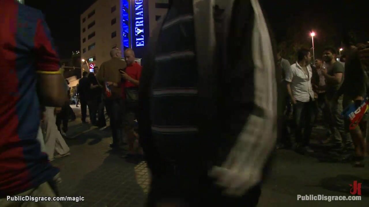 Gagged Spanish hottie Samia Duarte is bound on the public street by dominatrix Princess Donna Dolore then in the van fucked by big cock James Deen on old mattress