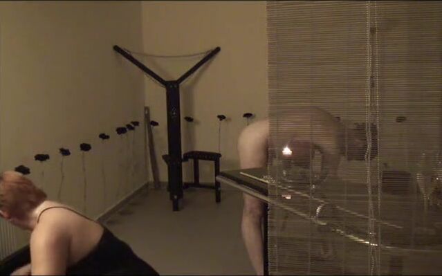 Anna fucks her slave hard with a strap-on and inserts a plug into his ass.