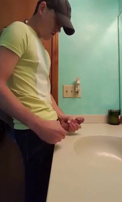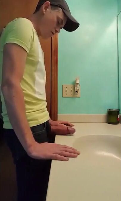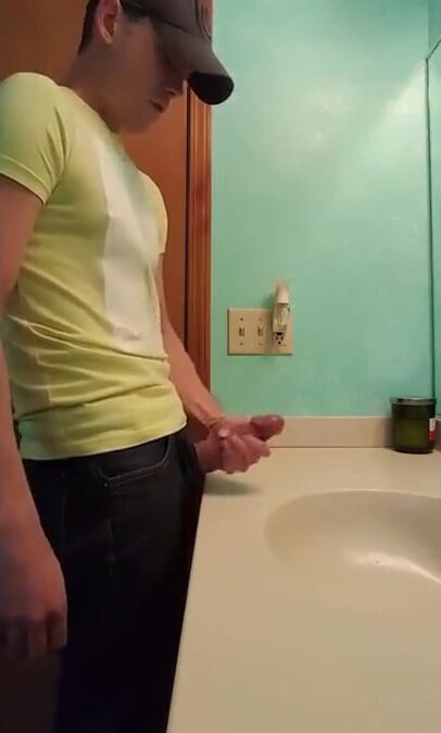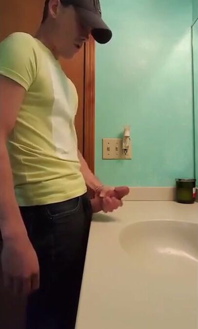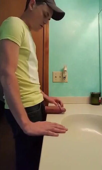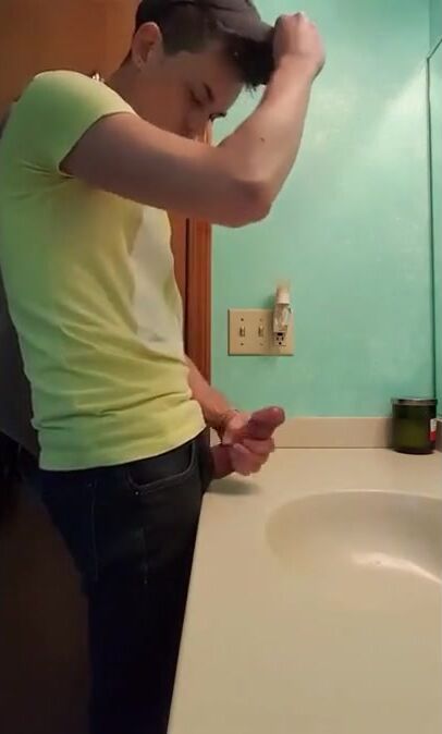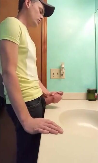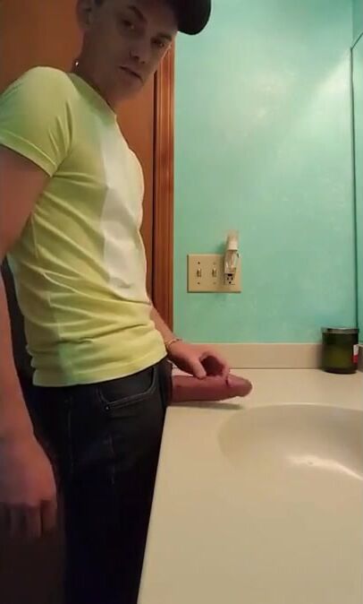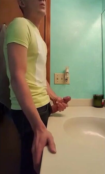 straight hunk with fat dick jerks off in bathroom 3
