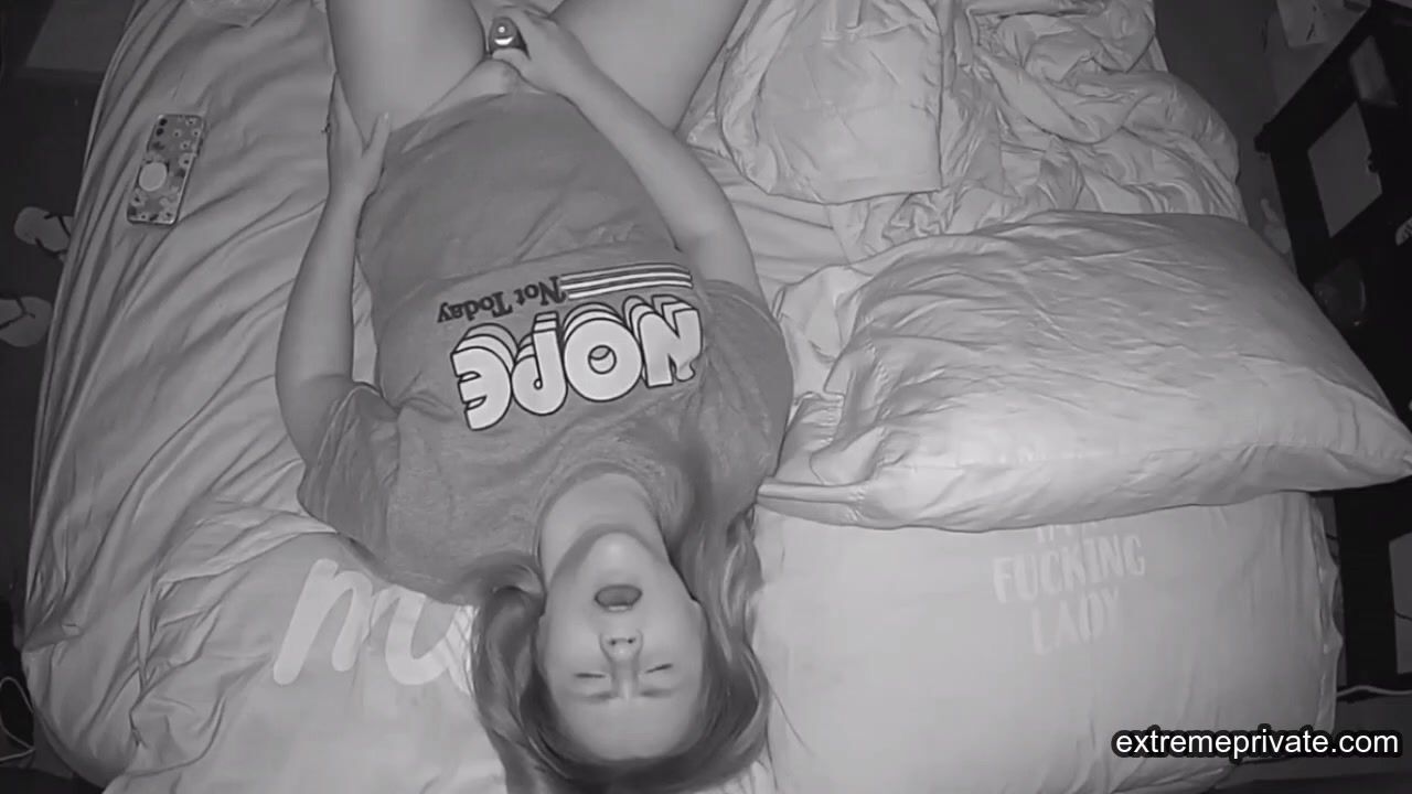 my stepsister(19) plays with her pussy in her bed, while in the next room I secretly watch and jerk off. She first watches some porn, then grabs her dildo, and cums wonderfully. I would love to cum on her tits.
