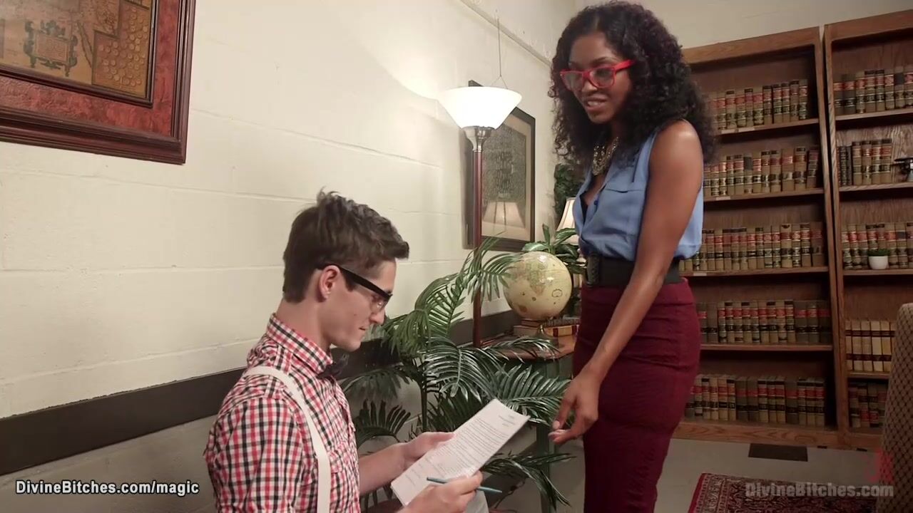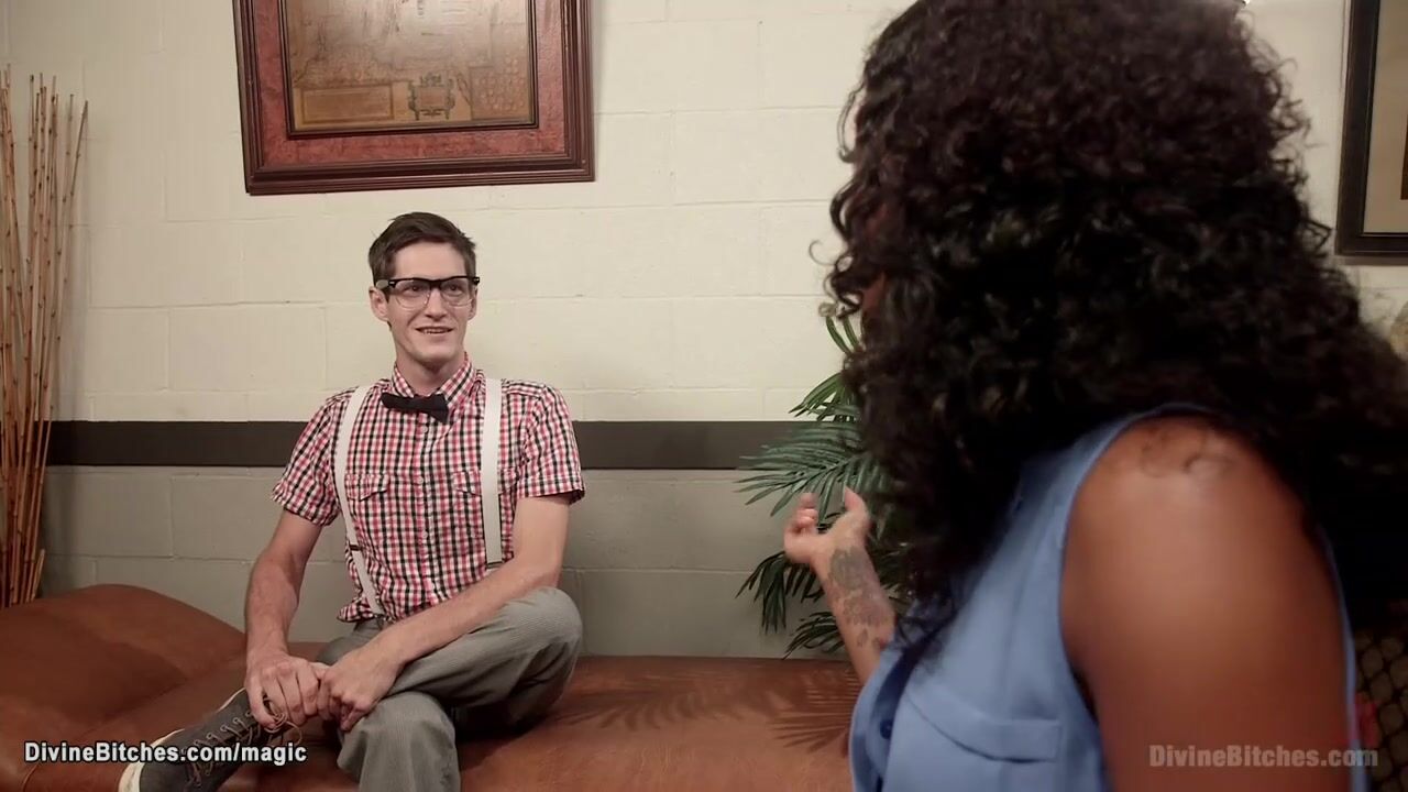 Sexy curly ebony shemale shrink Lotus Lane otk spanks patient Tony Orlando then in dungeon cuckolds and fucks him in threesome with her white bf Rob Yaeger