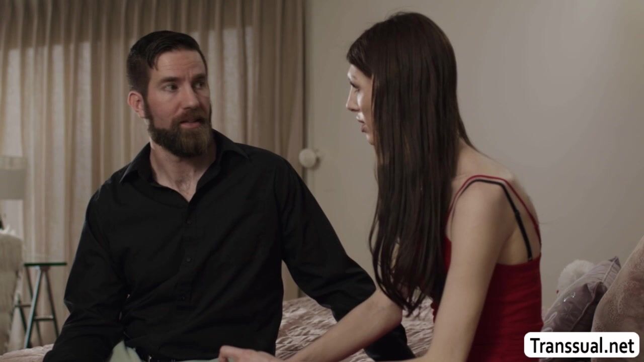Busty TS Ava Holt is on her bed and she got comforted by her bearded stepfather.They start kissing each other and she then throats his dick passionately.In return,her stepdad licks her ass first and he then fucks it so deep and hard.