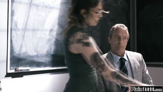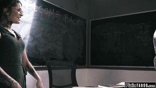 Tattooed latina babe licked by and fucking her old teacher