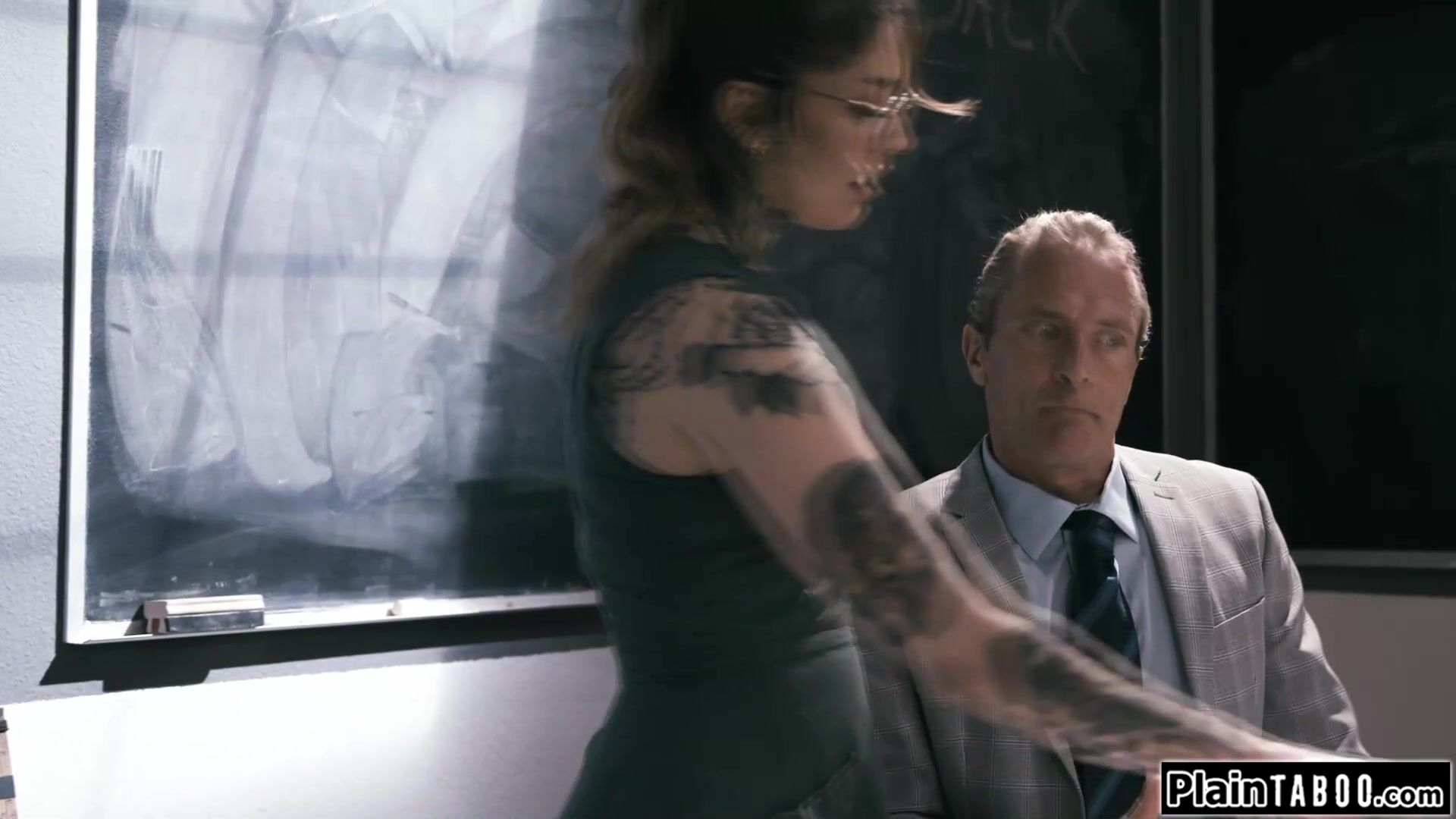 Tattooed latina gives her old teacher one last chance to fuck her.She kisses him and he gladly licks her wet pussy.On her knees the petite latin babe swallows his dick and balls and deepthroats his big cock.She spits on it and fucks him vigorously