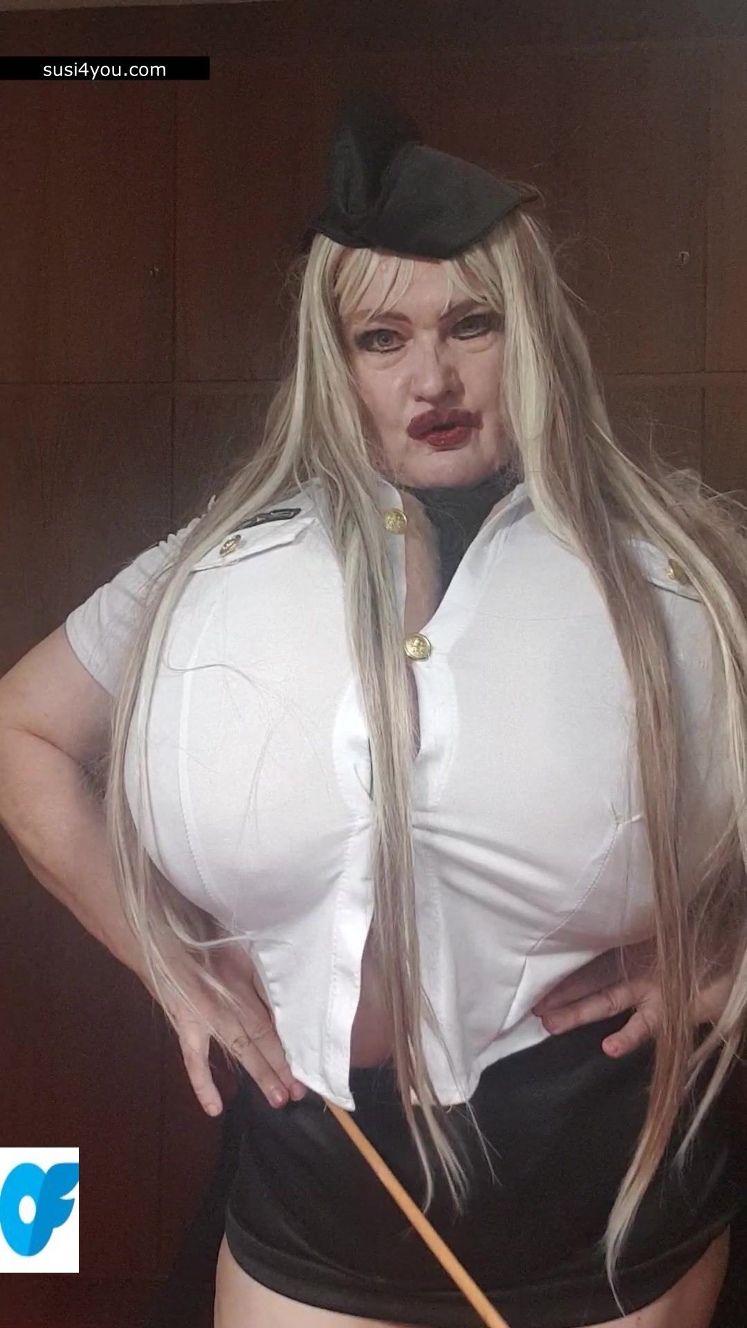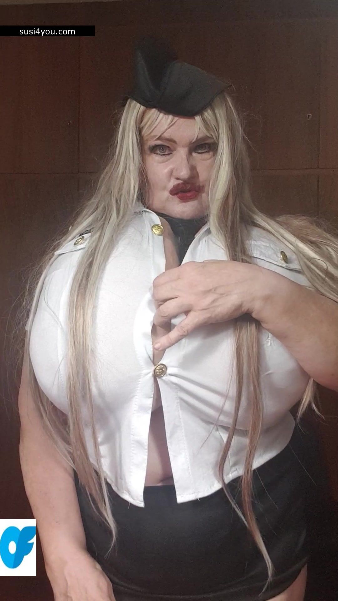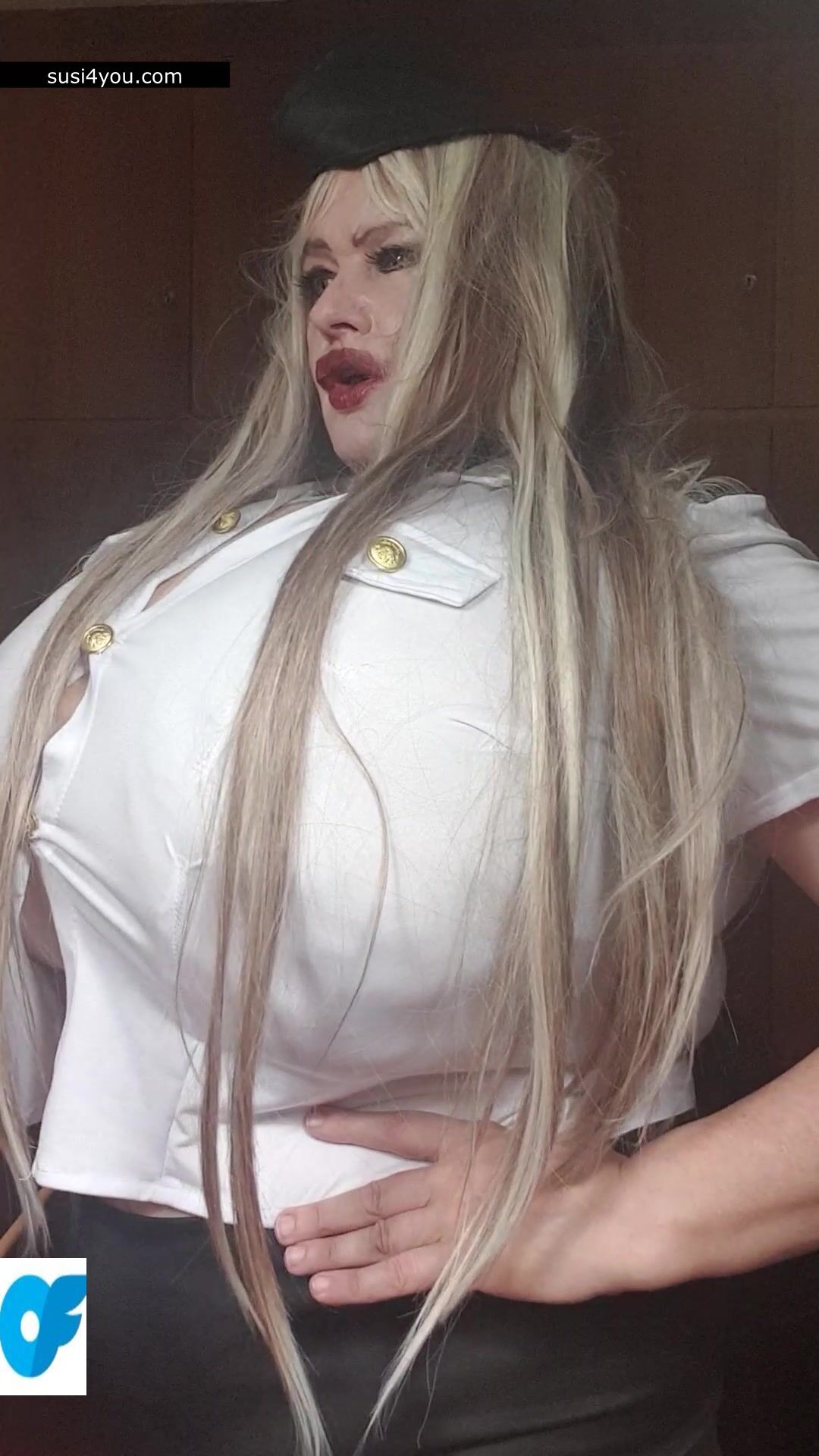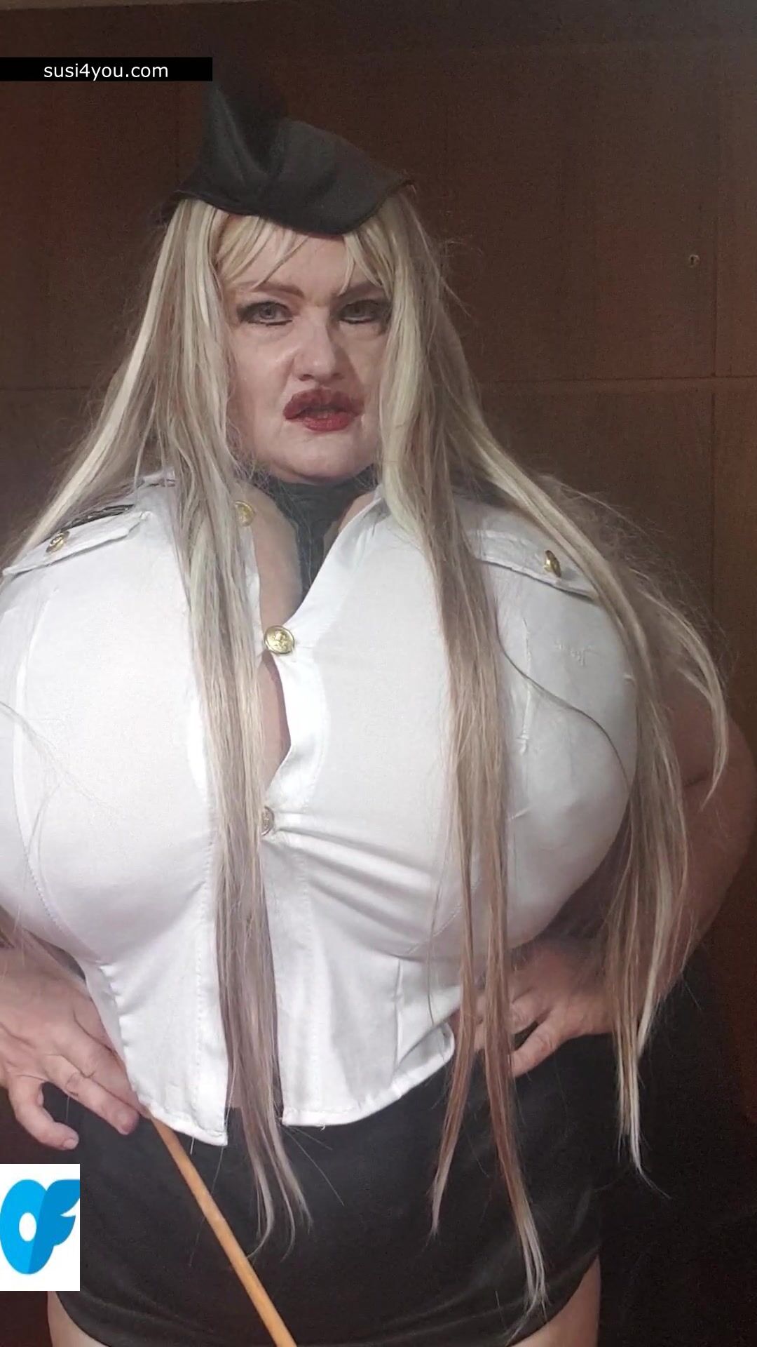 Susi is standing there with her huge cup k tits. She is wearing a policewoman costume and is talking to you in pov She is punishing you showing huge its and big pussy. You are parking wrong place and have to be punished