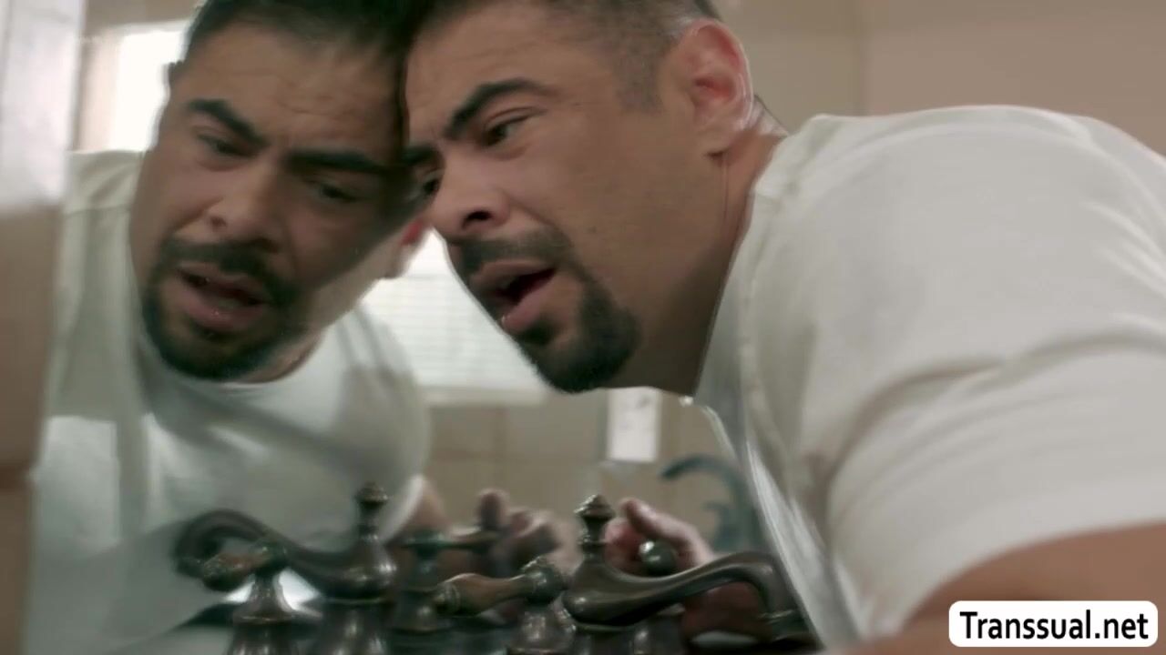 Fat stepfather hears his shemale stepdaughter moaning in the bathroom.He opens the door and saw her jerking off her shecock.Instead of getting mad,she lets her stepdad throat her shecock passionately and in return,she licks and fucks his ass so deep.