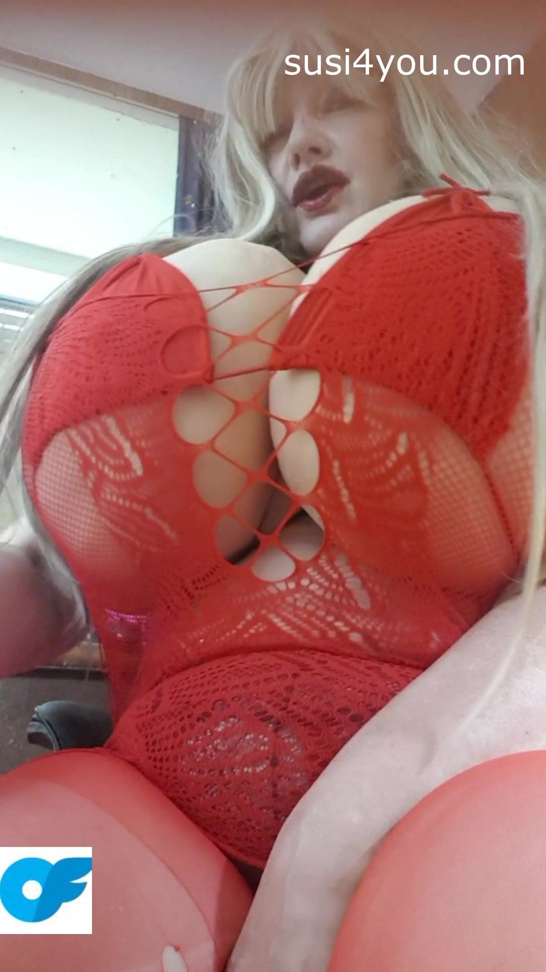 Have a look at nasty Susi showing pussy in red fishnet
