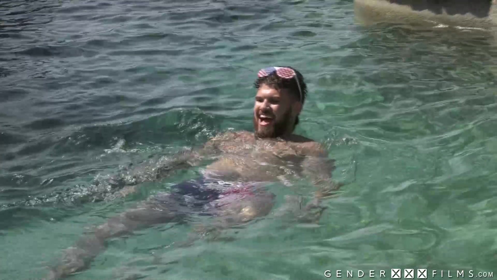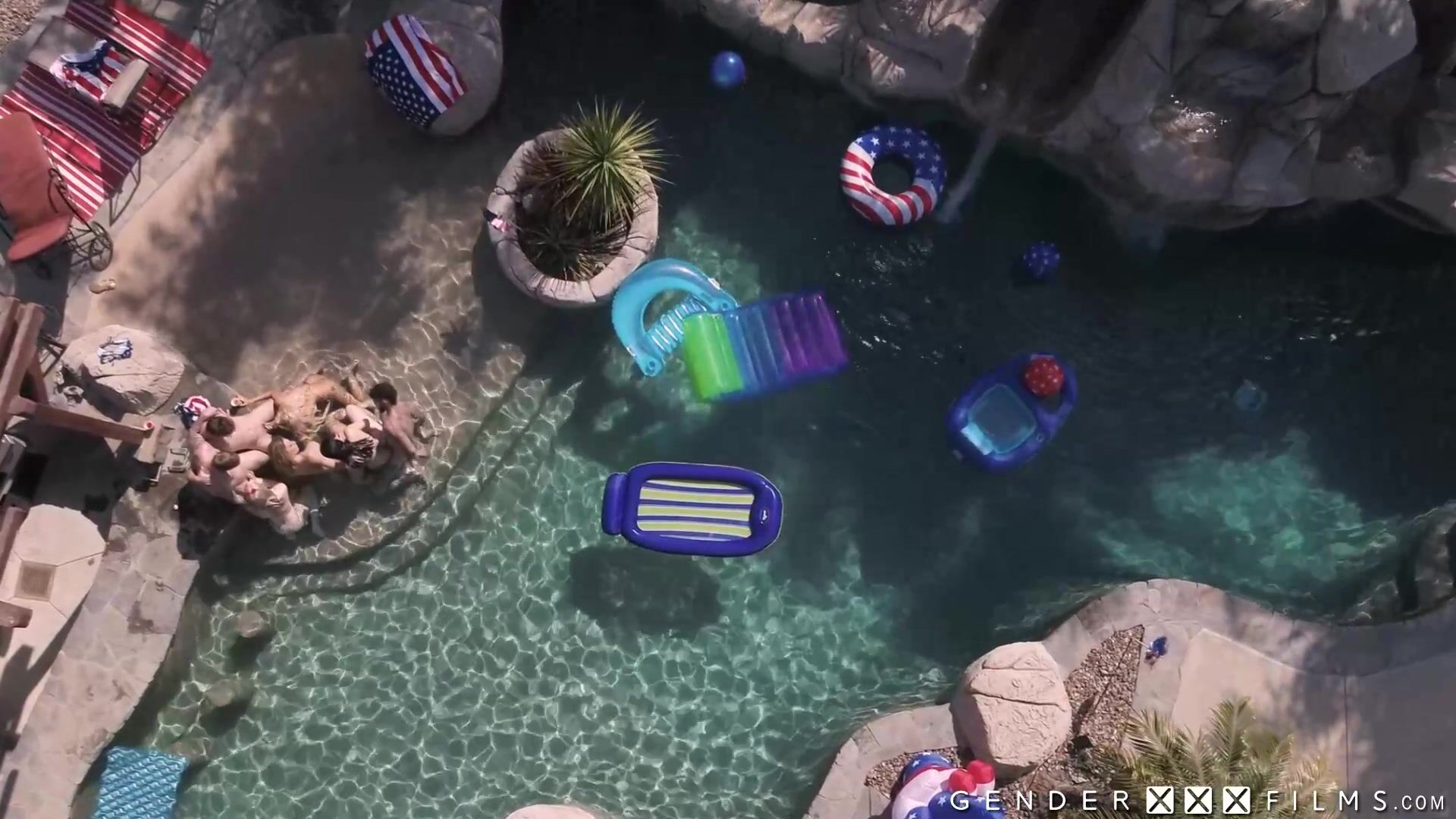 Next level partying with 3 guys and 4 shemales in this pool party dick only fuck fest