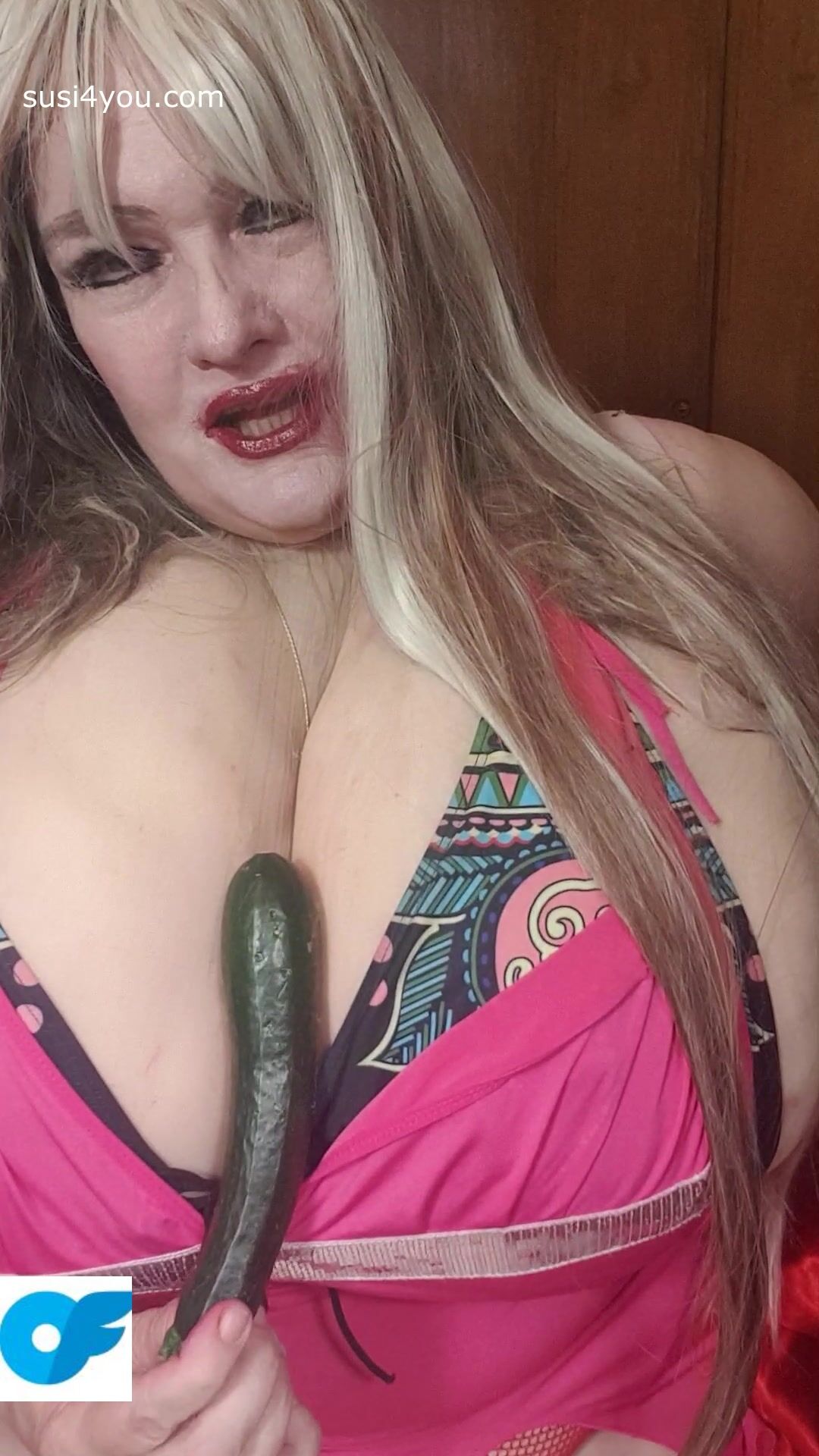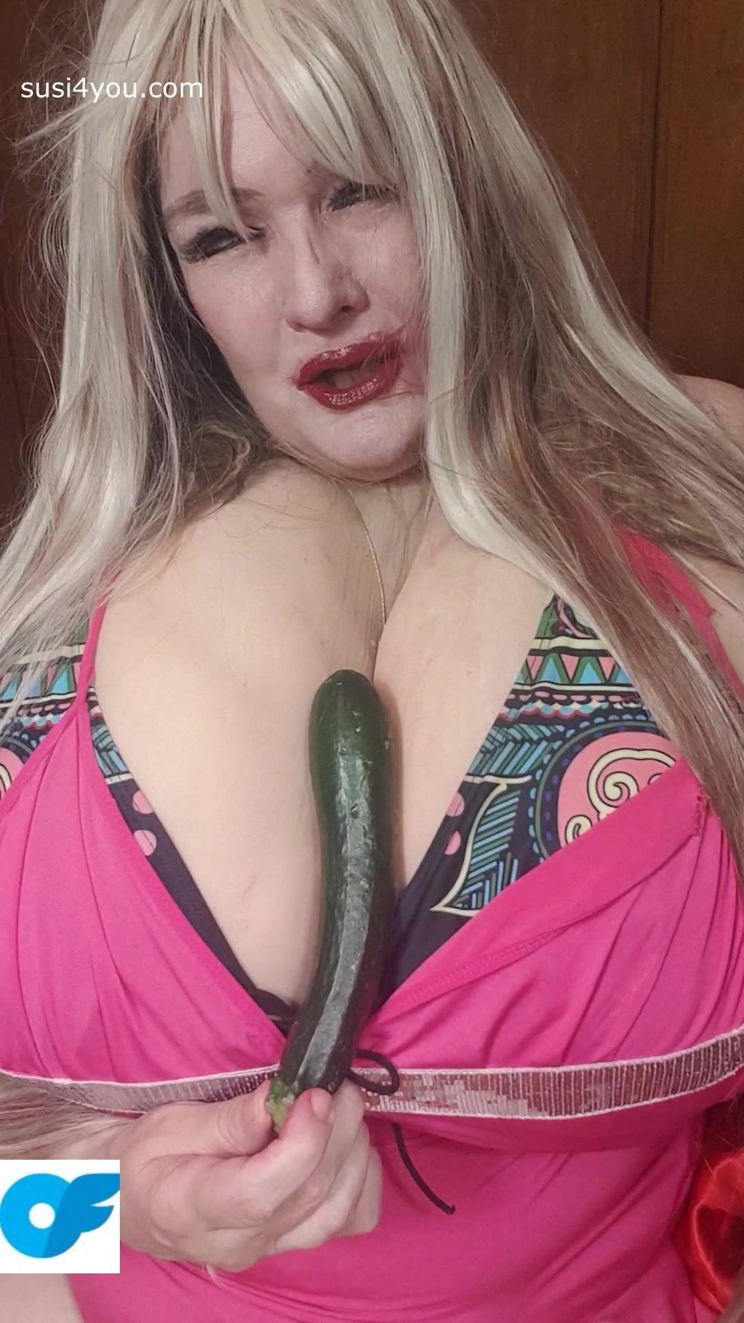 Enjoy this vegetables fucking. See susi enjoying and masturbating She is so horny taking vegetables for her pleasure. She is pulling down her pink dress fucking herself moaing pushing pussy with zucchini lets cum togehter.