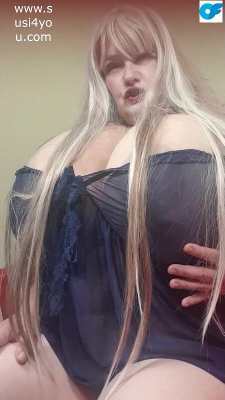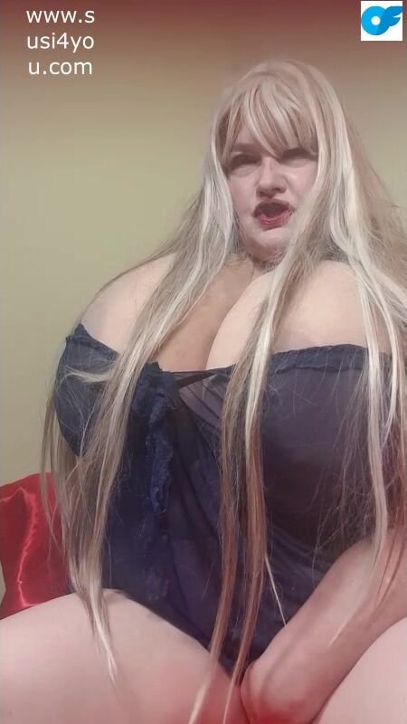 Susi is wearing blu lingerie She i s taking off her underwear showing fat cup k tits watch her rubbing her big pussy Are you horny? Lets have fun such a nasty boy you have to cum Hear this smacking pussy big and fat and those monster big fat tits.