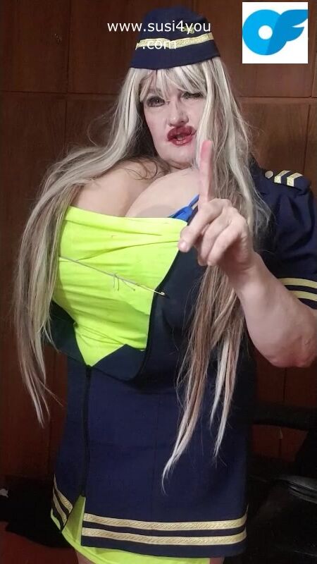Sexy stewardess is teasing you with big tits out. Watch those huge cup k boobies Susi is pulling them out Enjoy this nice nasty jerk off instruction you cumslave you have to obey you are mine.