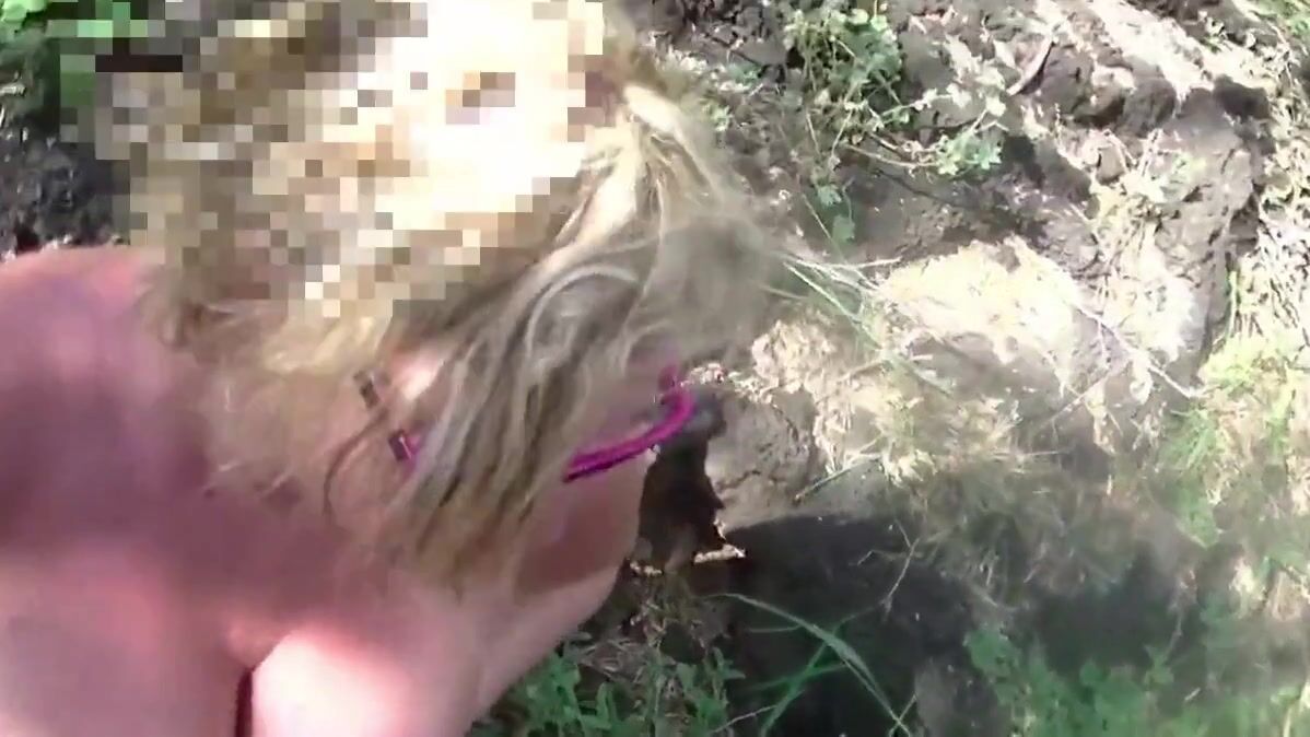 Suzy sucks cock at the beach, guy walks by and checks it out, cumshot on her big tits!