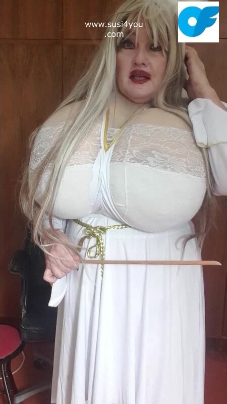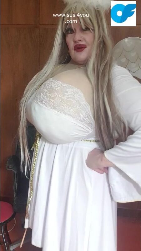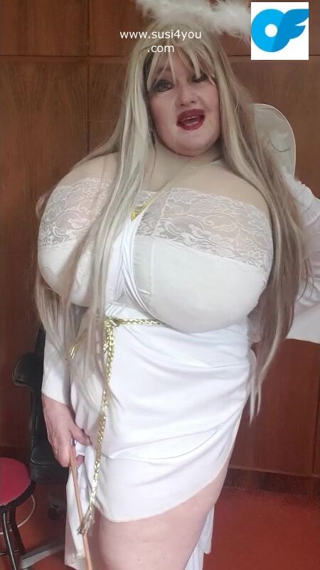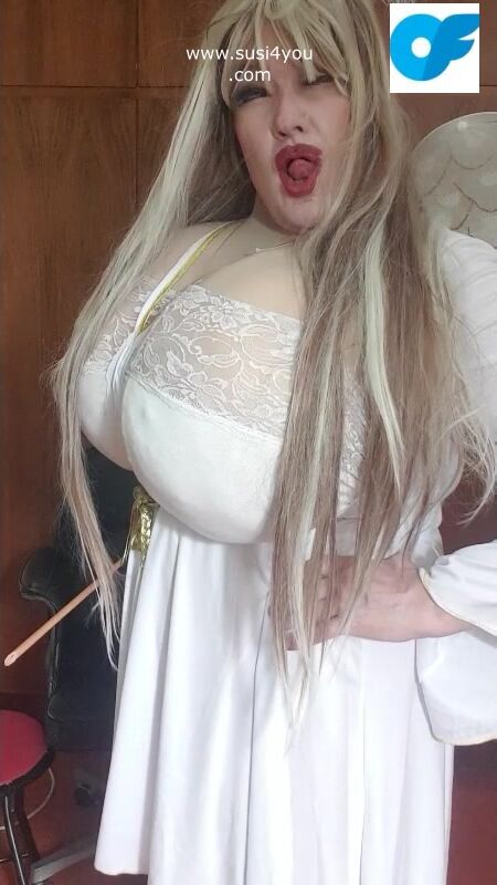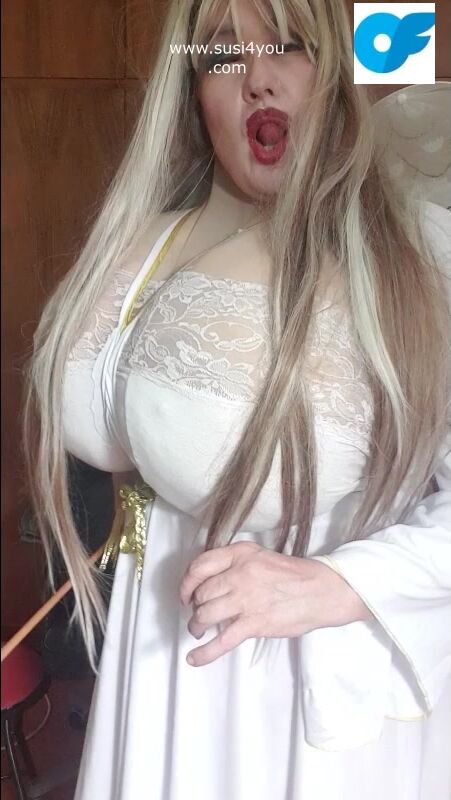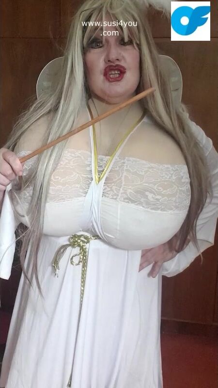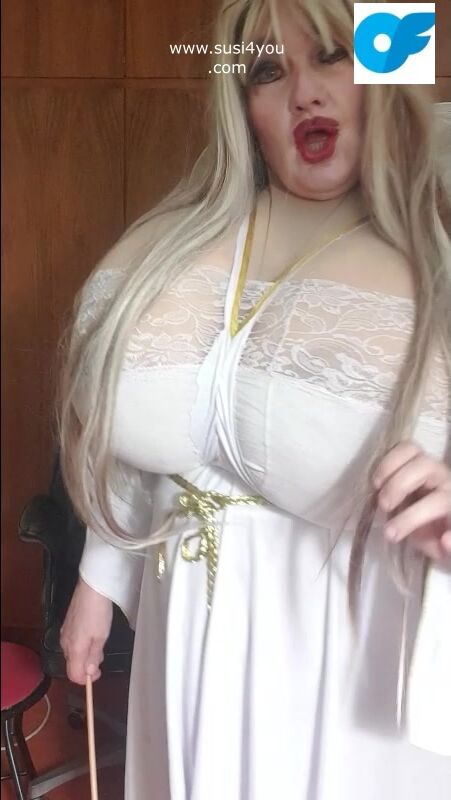 Susi is wearing a costume of an angel See this angellike sexy lady rubbing the toy and giving you some nice education with a stick in her hand haha nasty boy you have to cum for her enjoy it and cum for me.
