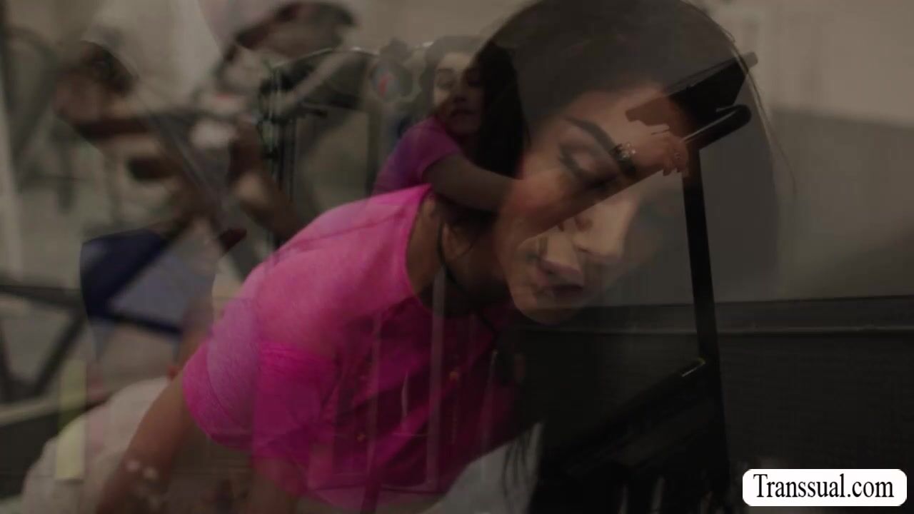 Bald dude cant resists the hottness of Trans Woman working out in the gym.He close to her and he then licks her ass to makes it wet before he puts his dick inside her ass.After that,he lets her throat his dick and fucks her ass again and again.