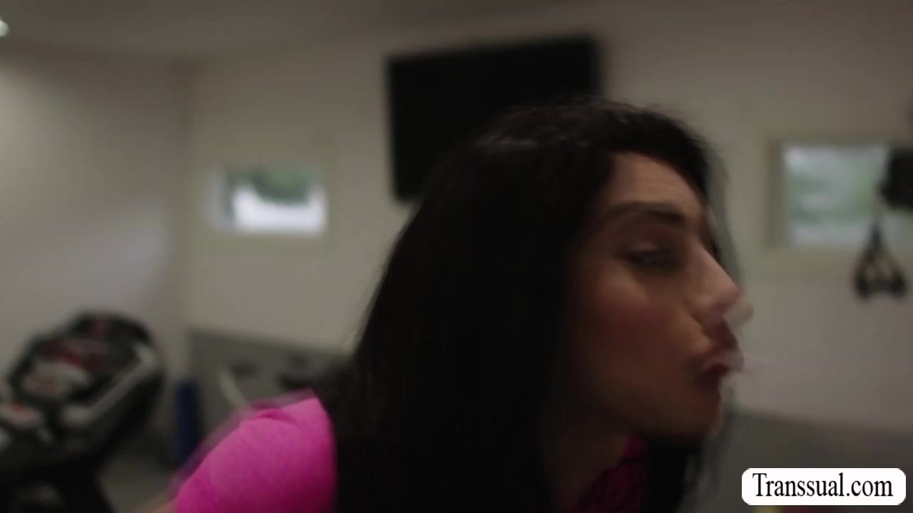 Horny dude licks and fucks the ass of super hot TS in gym