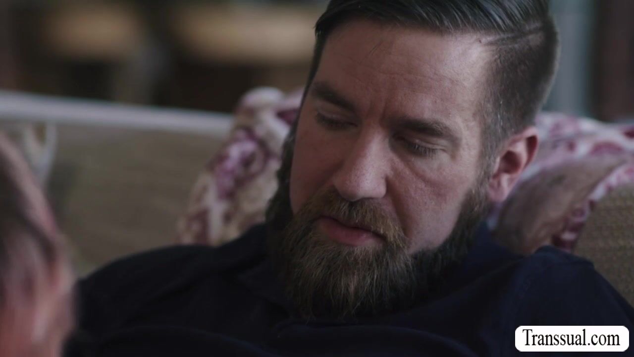 Stepdad comforts his Trans Stepdaughter because she looks so tired.They start kissing each other on the couch and he then licks her ass to makes it wet.In return,his TS stepdaughter throat his dick and lets him fuck her wet ass so deep and hard.