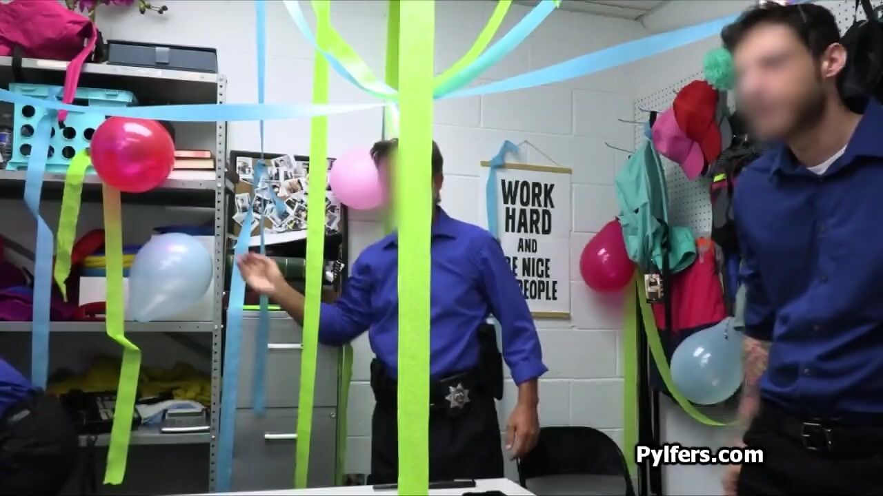 Surprise gangbang party at the security office