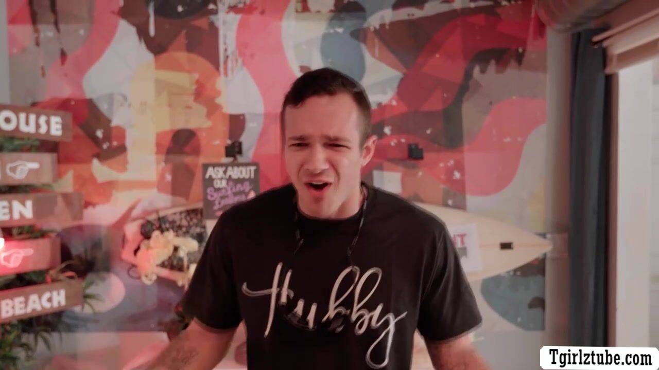 Lovely TS and her boyfriend are in the surf shop to learn their lessons.After that,she throats her boyfriends big cock and her instructor.Next is,she lets them bareback her ass one by one so deep and hard.
