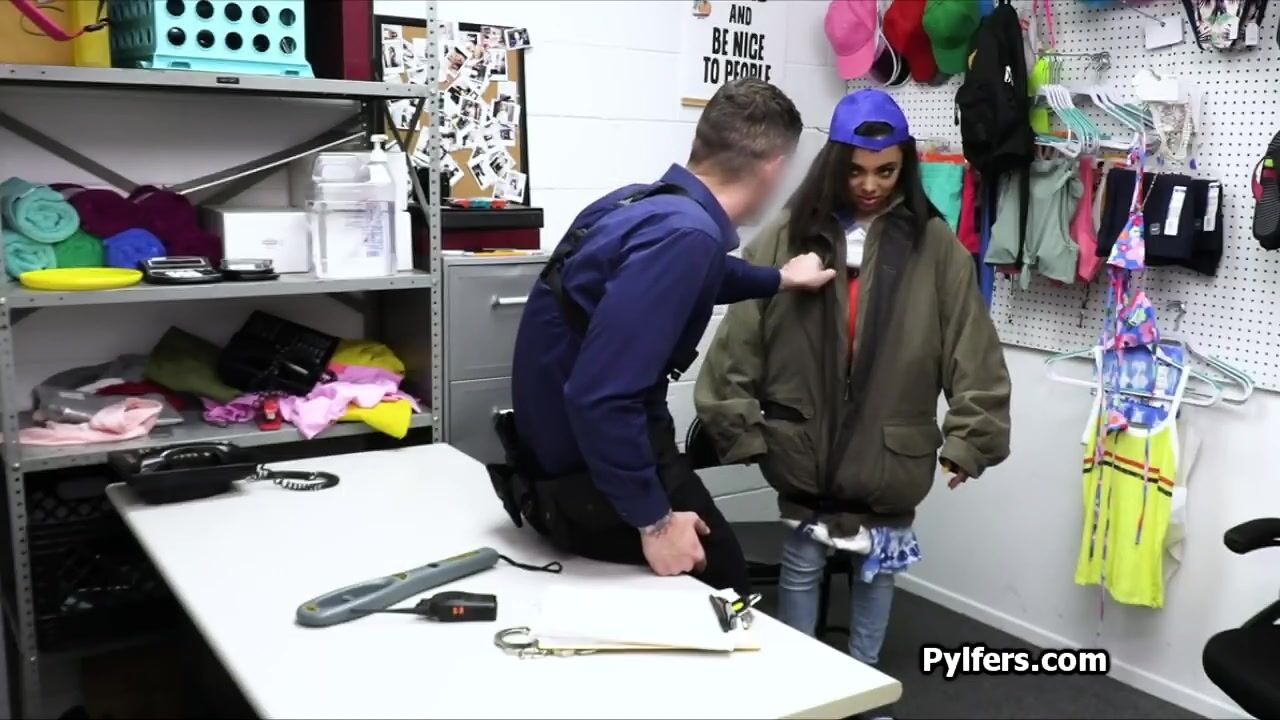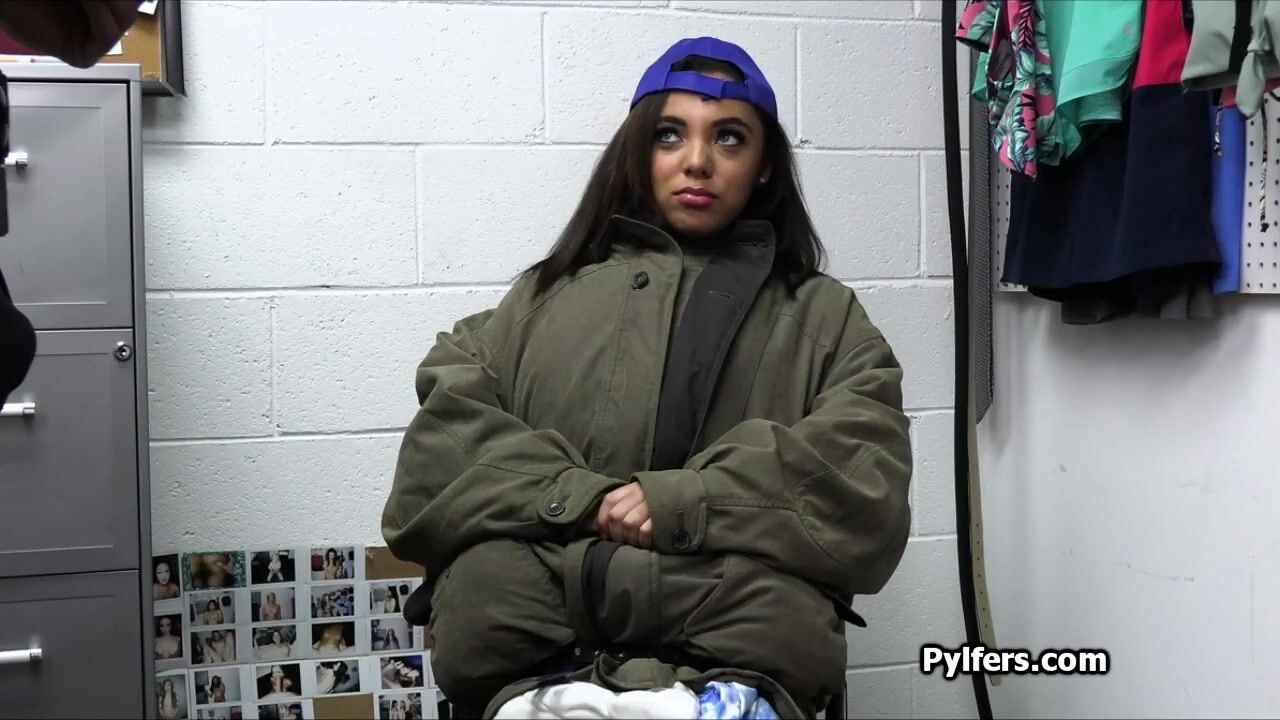 This lovely black petite got a pretty big jacket on.. it turns out she is hiding a lot of things underneath it. Now its time to pay for the goods!