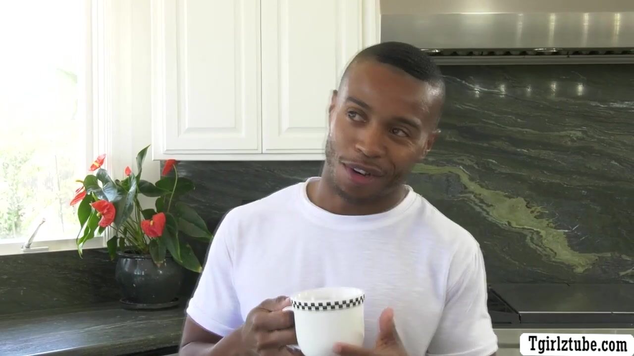 Busty TS stepmom and her short black stepson are in the kitchen having conversation.After that,she throats his shot black cock passionately and in return,she gets her tight wet ass bareback fucked by her stepson.
