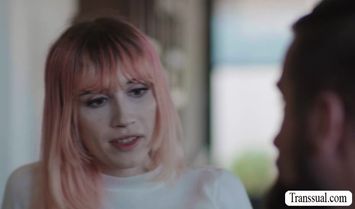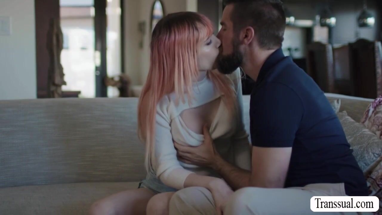 Pink haired TS and her stepdad are on the couch kissing each other passionately.After that,she pulls out his dick and she then throat it until it gets so hard.In return,her stepdad fucks her tight wet ass so deep and fucking hard.