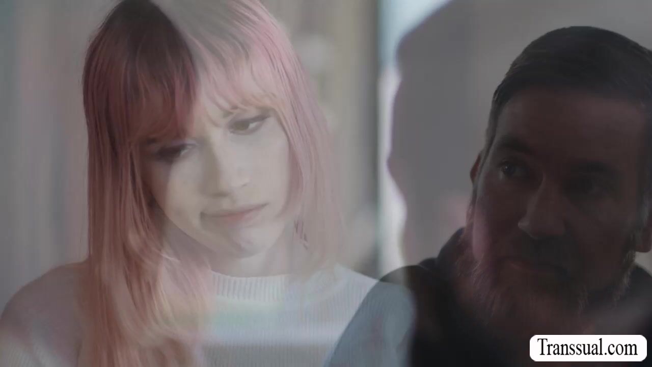 Pink haired Trans Woman butt fucked by her beareded stepdad