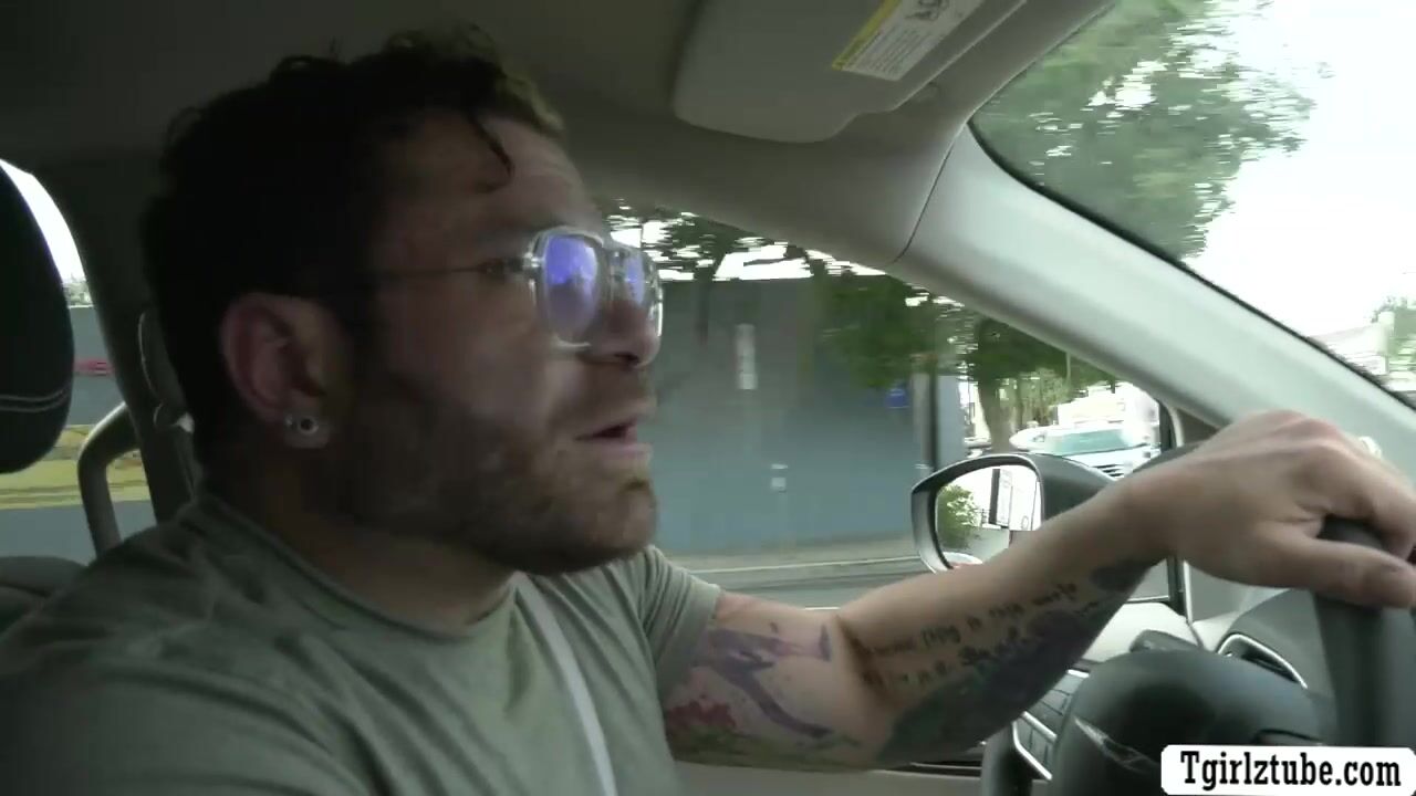 Pretty shemale hitchhiker gets her ass banged by car driver