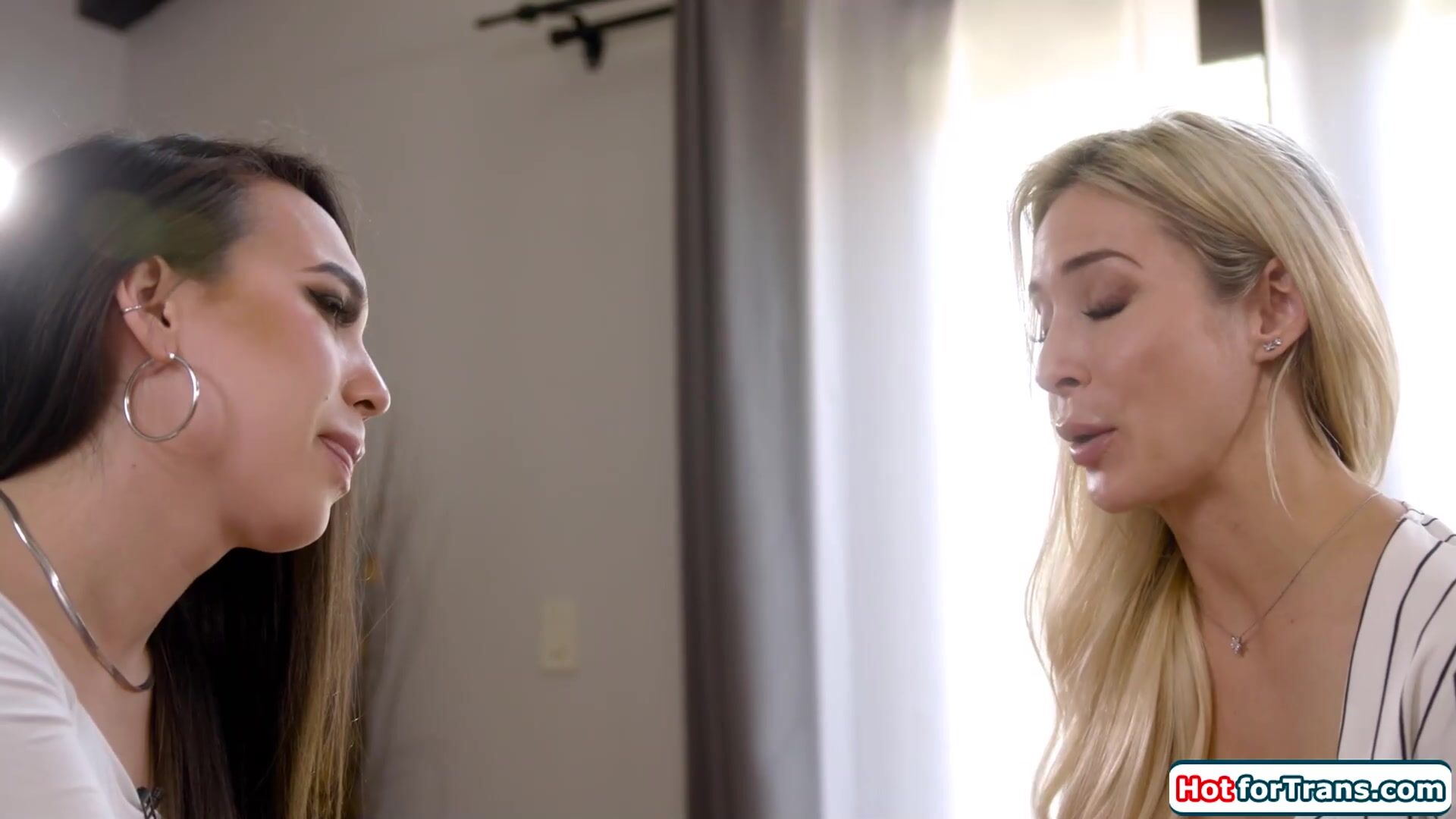 Asian ts Kasey Kei feels a real connection with the small tits interviewer.The small boobs shemale kisses her and sucks her titties.The blonde babe jerks off the tgirls tranny dick before deepthroating is.The trans licks and bangs her shaved pussy