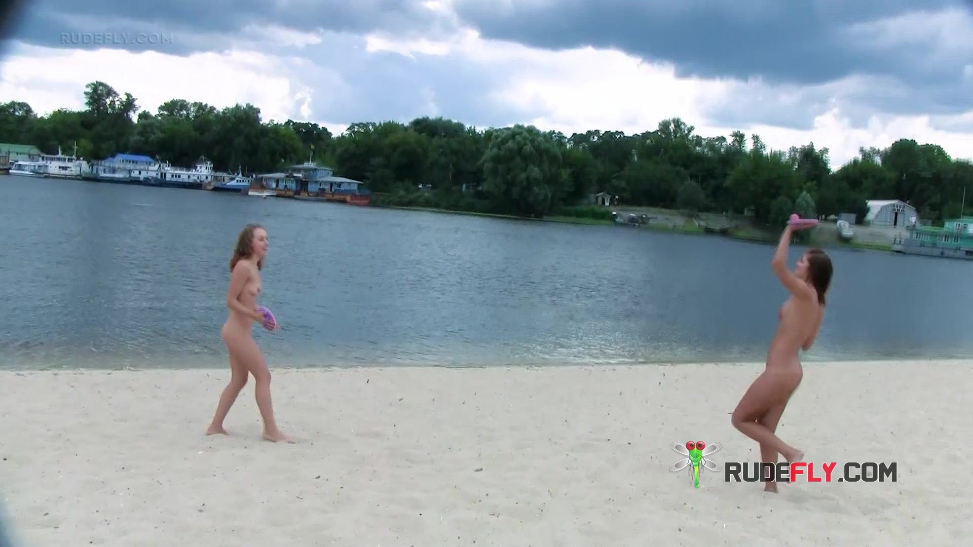 Cute amateur girls have playful nudist fun