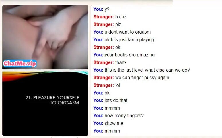 Curly teen with great body and horny wet pussy masturbating on adult 1 on 1 video chat.