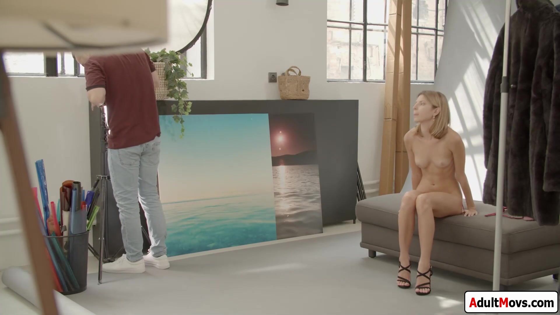 Model Gina Gerson undresses when the photographer has his back turned.The petite small boobs Russian makes her move and kisses him.The small tits blonde gets her shaved pussy masturbated and licked before she deepthroats and rides his fat cock